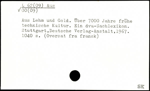 Aus Lehm und Gold. Uber 7000 Jahre frühe technische Kultur. Ein dva-Sachlexikon.