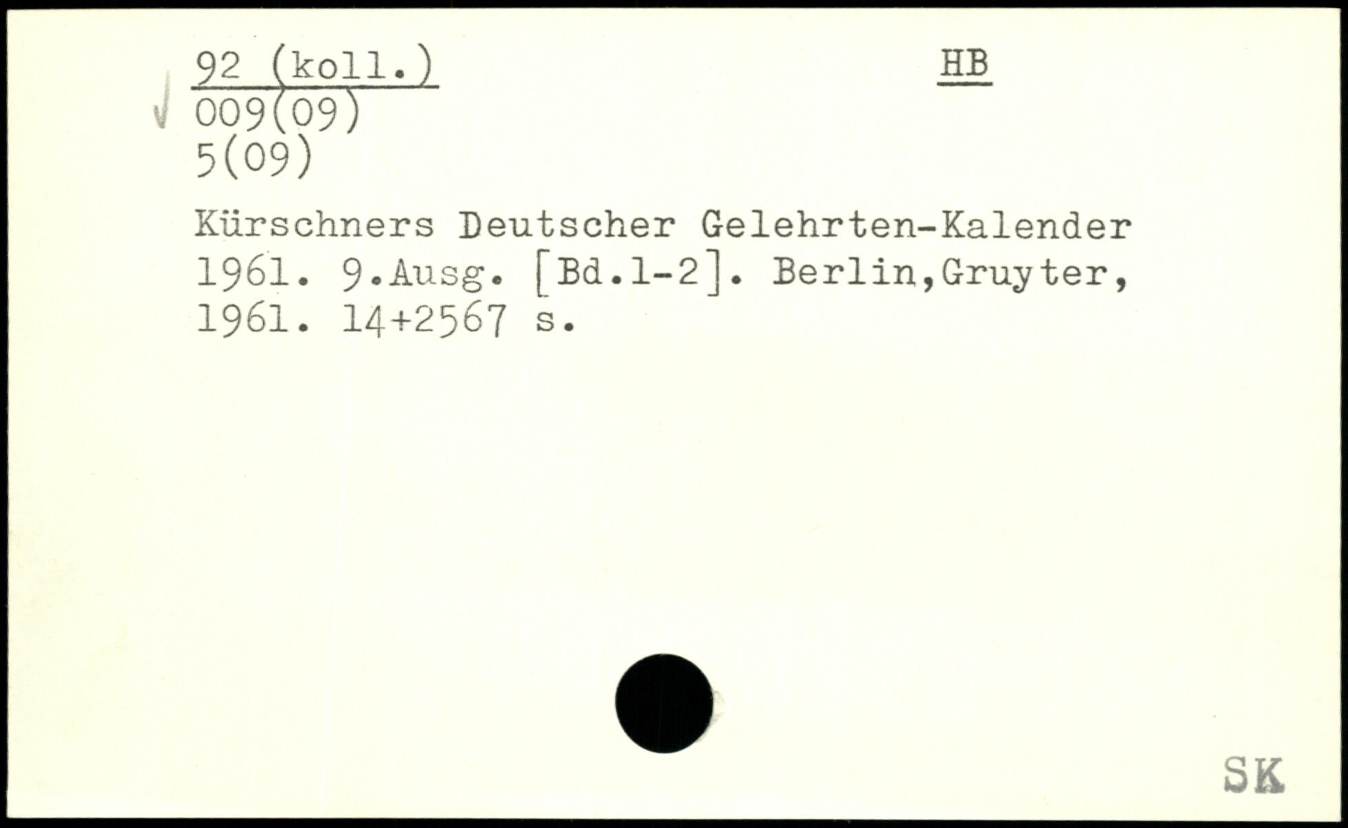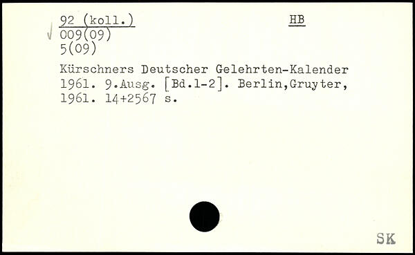 Kürschners Deutscher Gelehrten-Kalender 1961. 9,Ausg. [