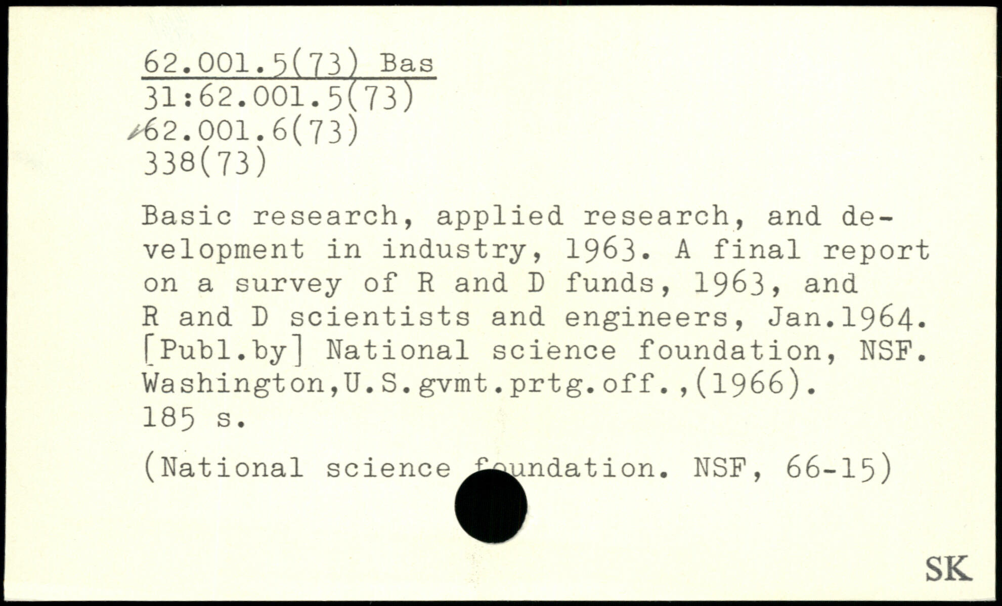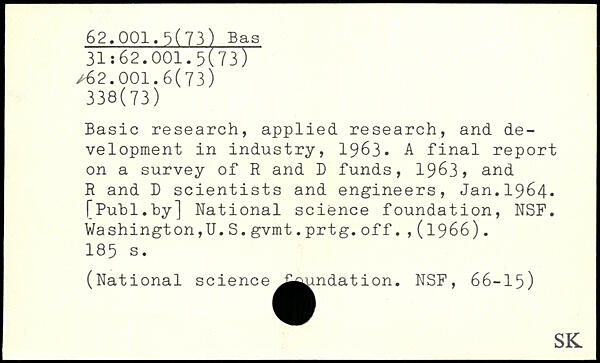 Basic research, applied research, and development in industry, 1963. A final report on a survey of R and D funds, 1963, and R and D scientists and engineers, Jan.1964.