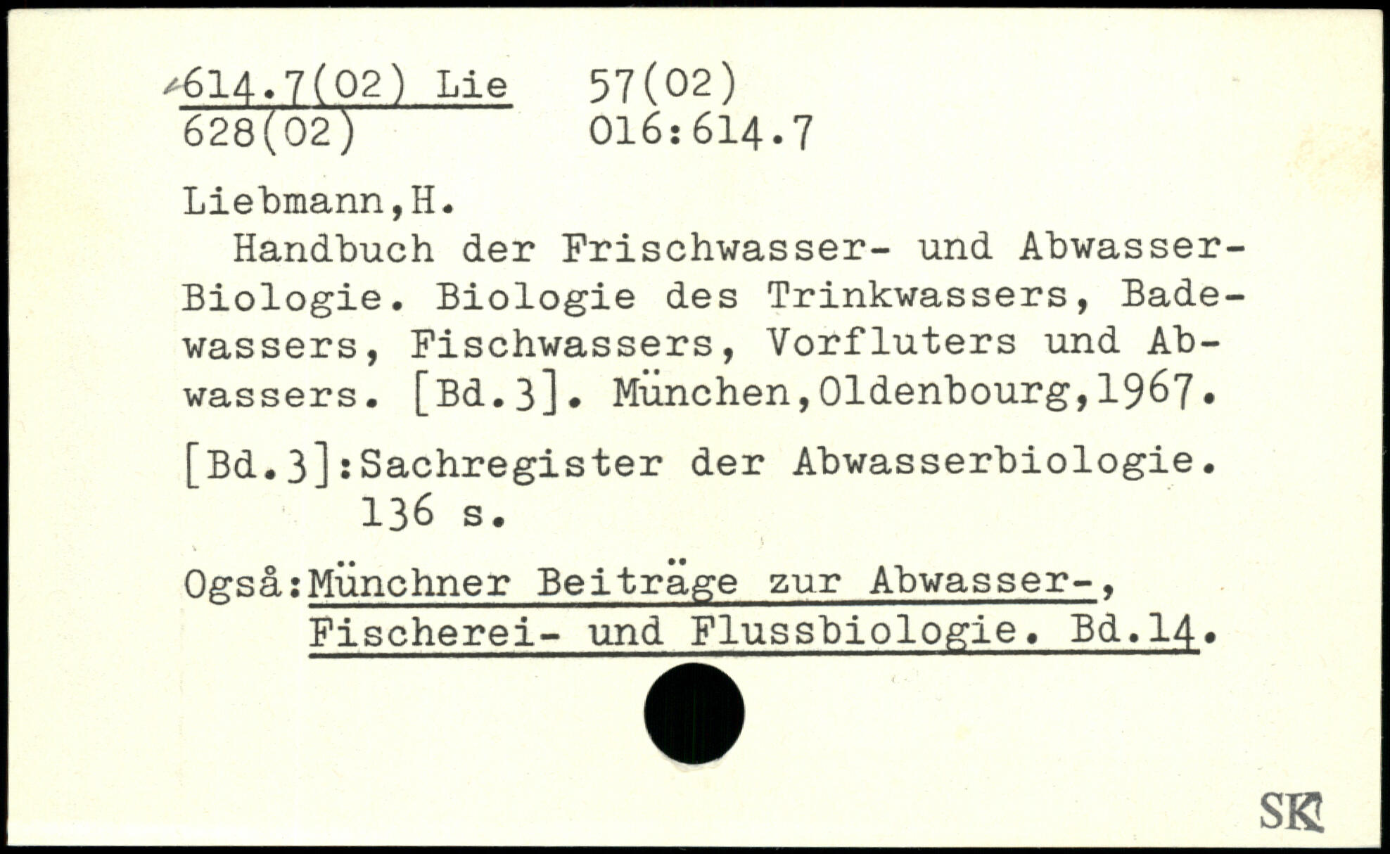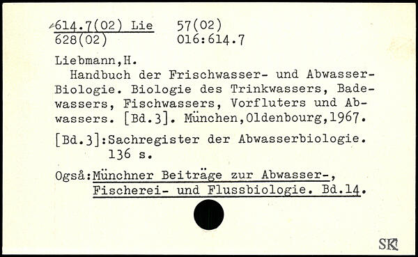 Handbuch der Frischwasser- und Abwasser-Biologie. Biologie des Trinkwassers, Badewassers, Fischwassers, Vorfluters und Abwassers.