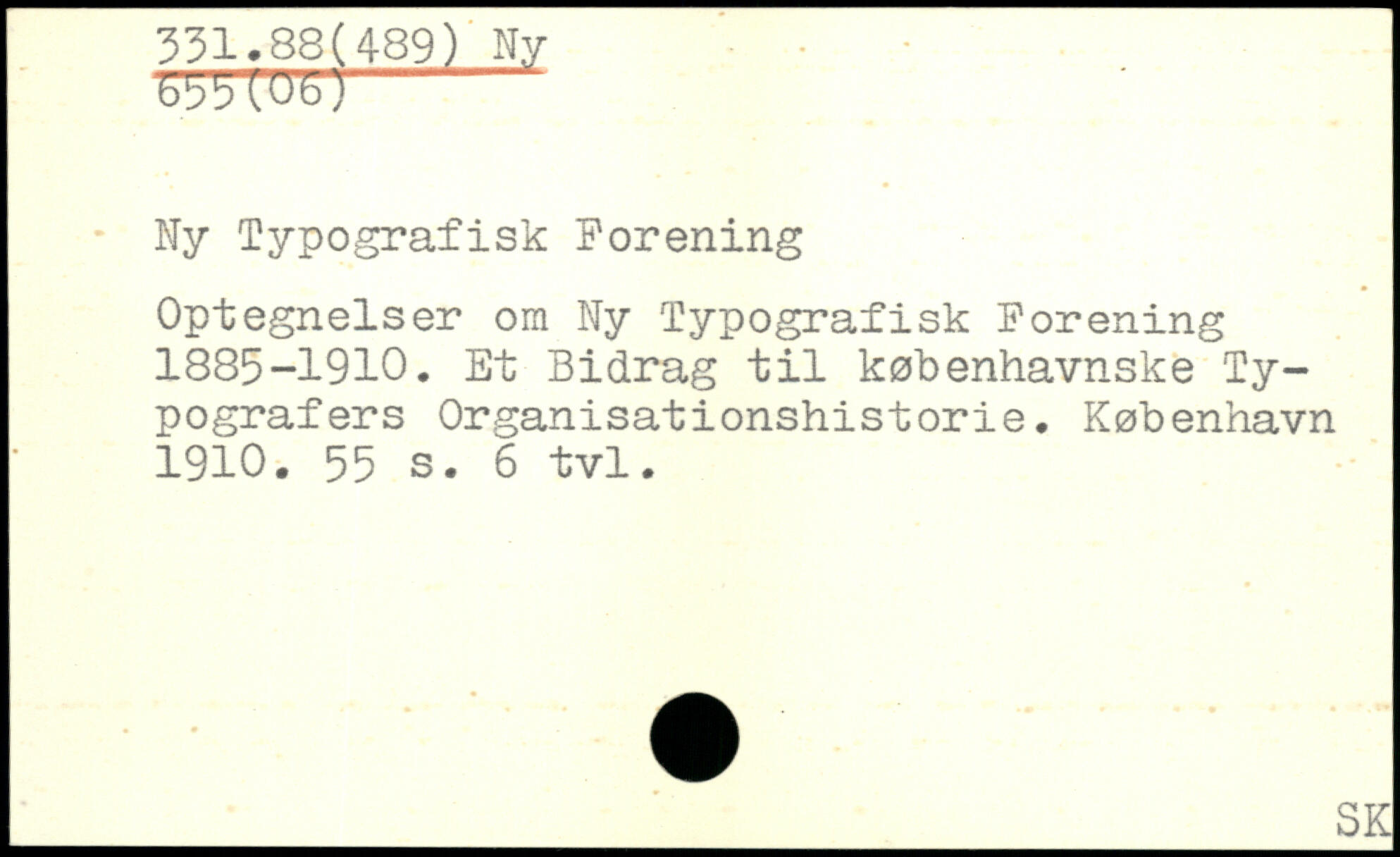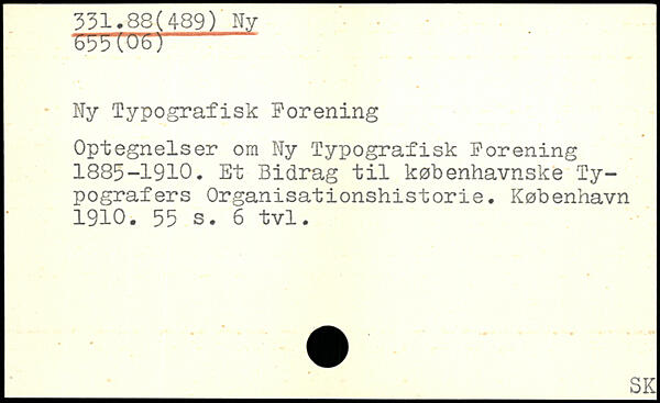 Ny Typografisk Forening Optegnelser om Ny Typografisk Forening 1885-1910. Et Bidrag til københavnske Typografers Organisationshistorie.