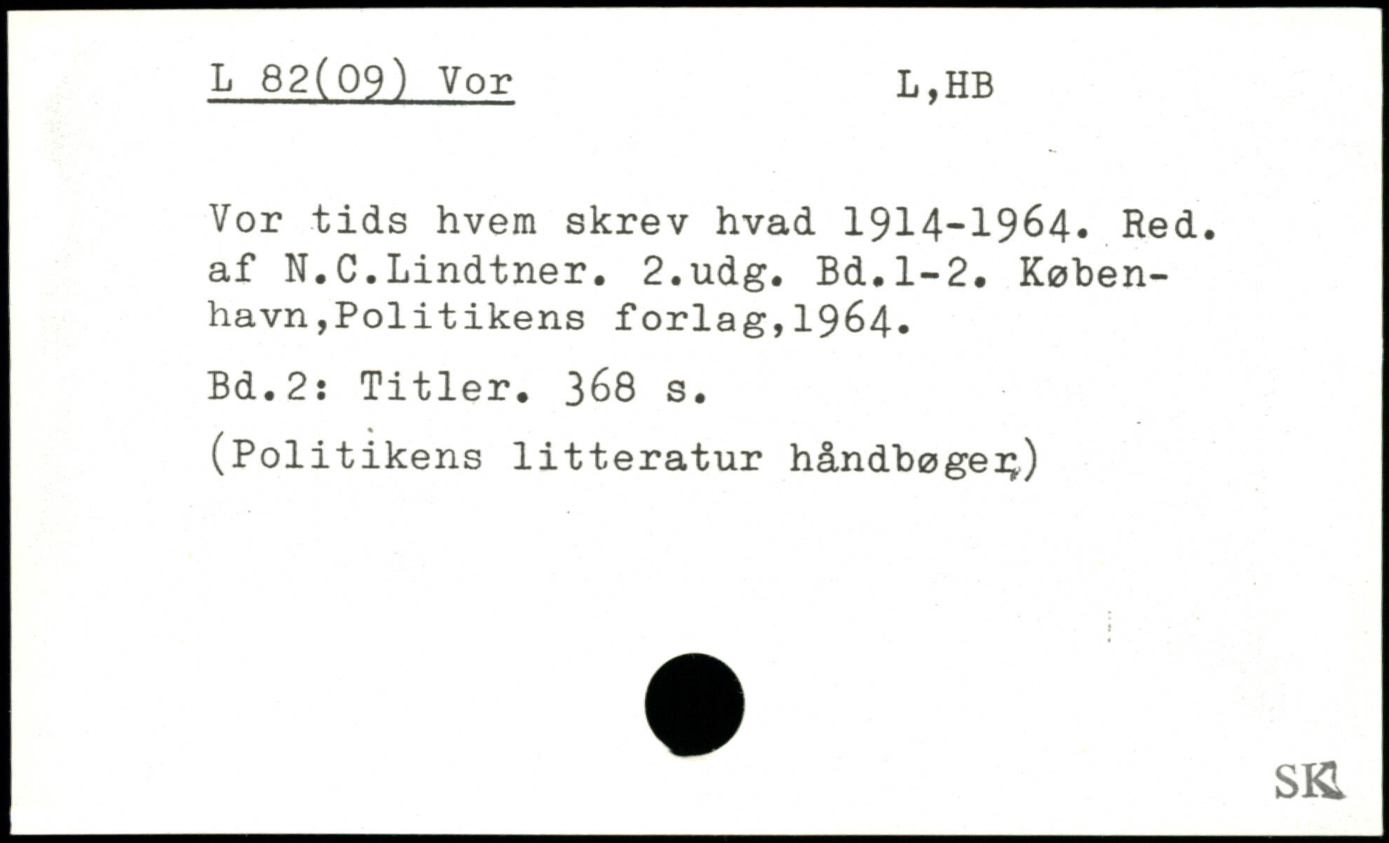 Vor tids hvem skrev hvad 1914.1964. Red. af N.C.Lindtner.