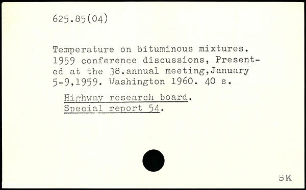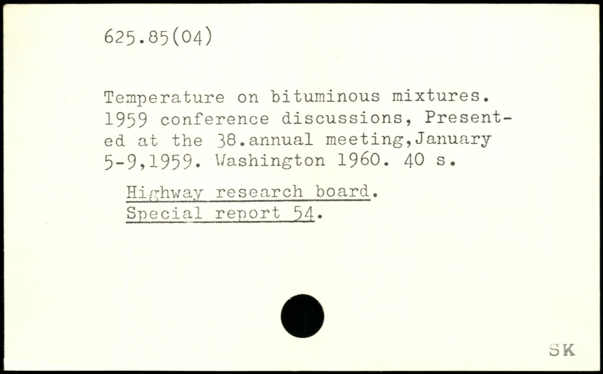 Temperature on bituminous mixtures. 1959 conference discussions, Presented at the 38.annual meeting,January 5-9,1959.