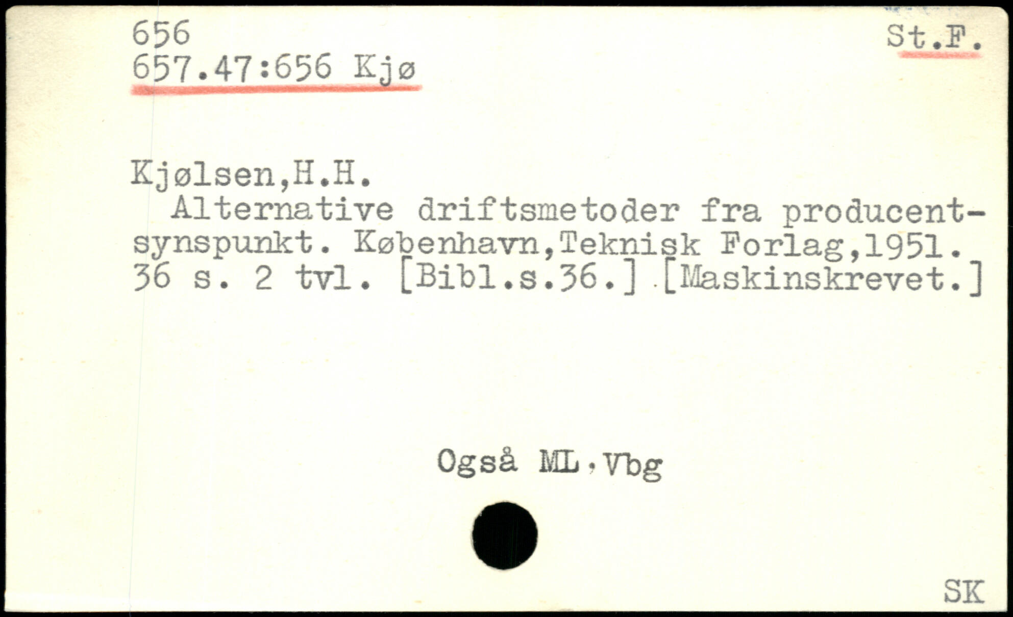 t.K. 657.47:636 Kjø Kjølsen,H.H. Alternative driftsmetoder fra producentsynspunkt.
