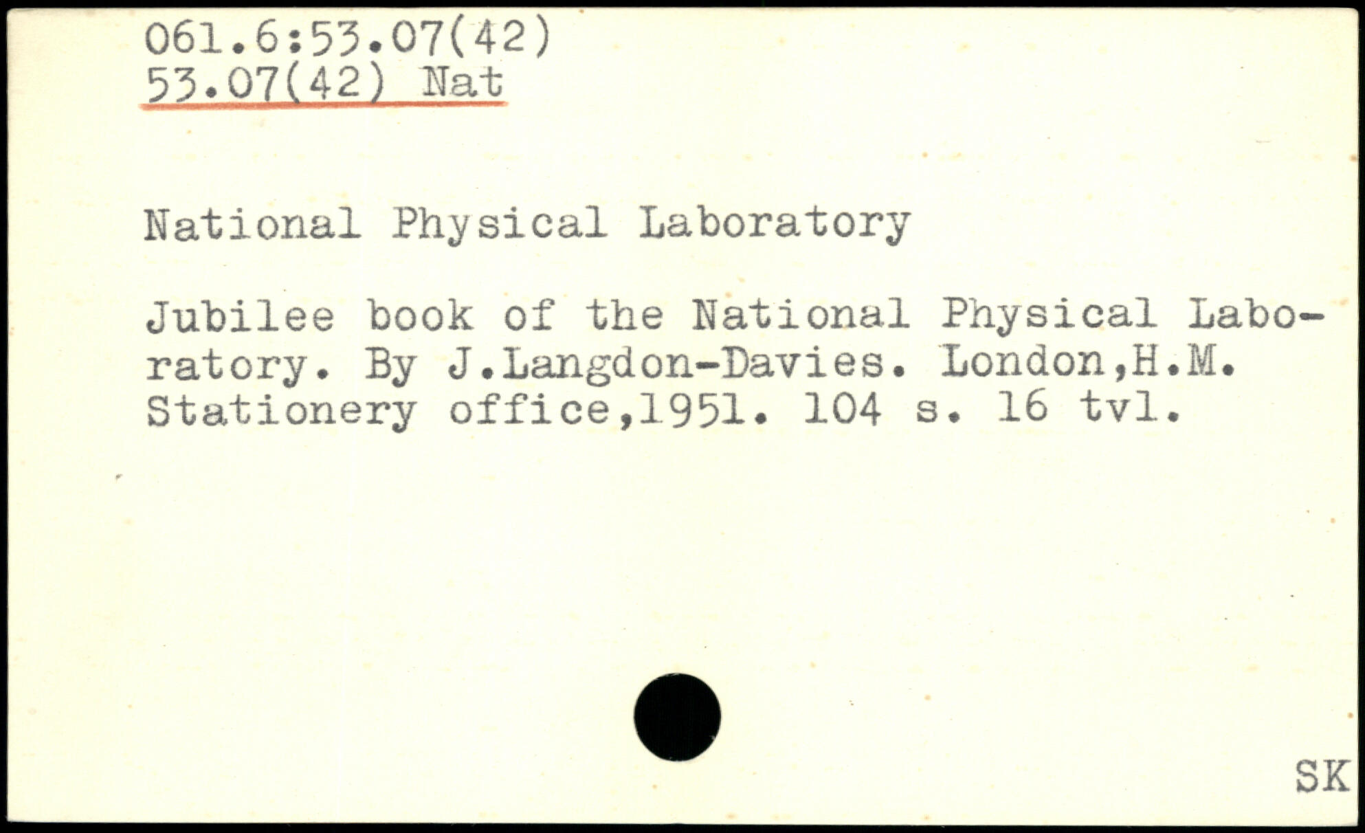 National Physical Laboratory Jubilee book of the National Physical Laboratory. By J.Langdon-Lavies. London,H.M. Stationery office,1951