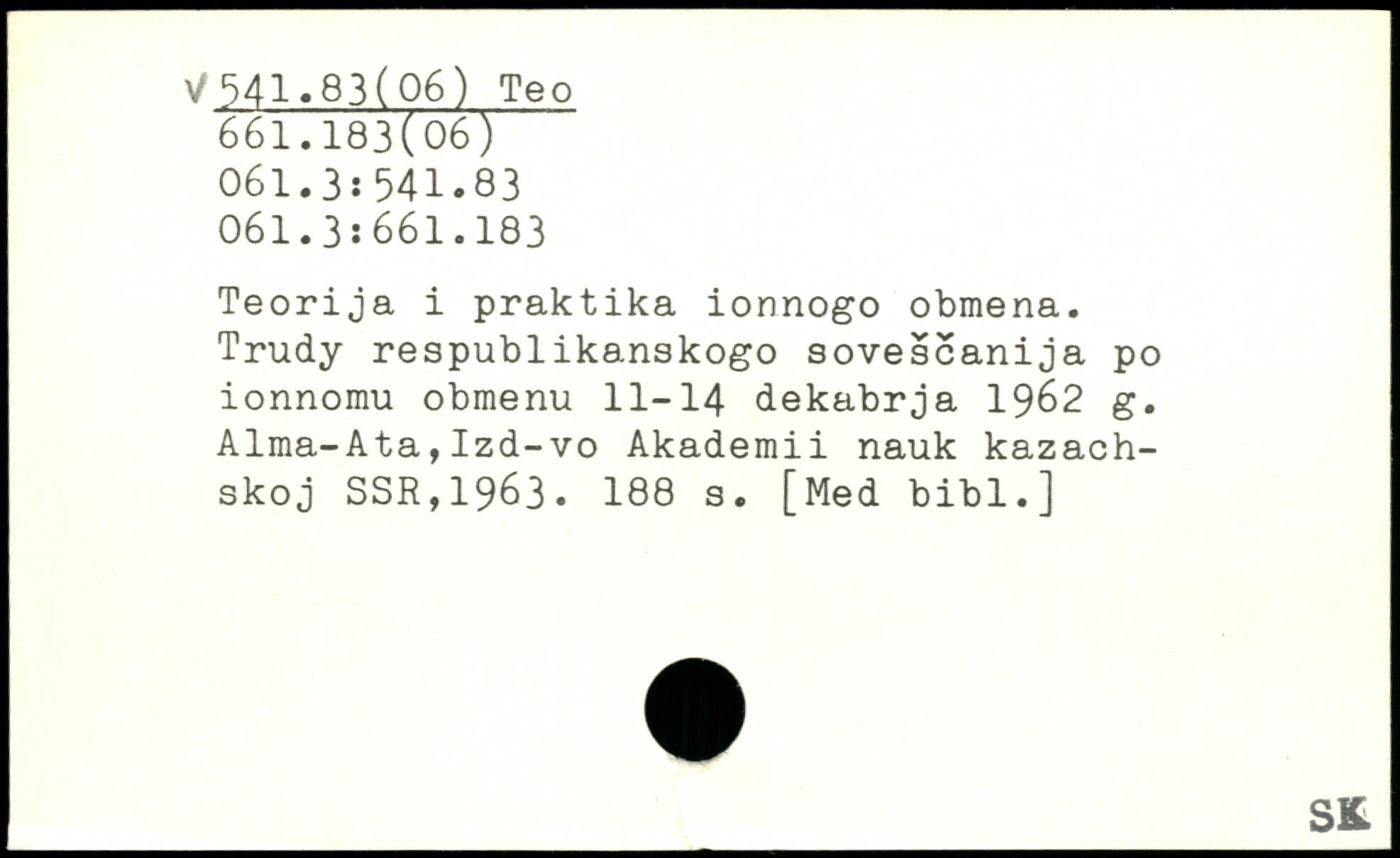 Teorija i praktika ionnogo obmena. Trudy respublikanskogo sovescanija po ionnomu obmenu 11-14 dekabrja 1962 g. Alma-Ata,Izd-vo Akademii nauk kazach-skoj SSR,1963.