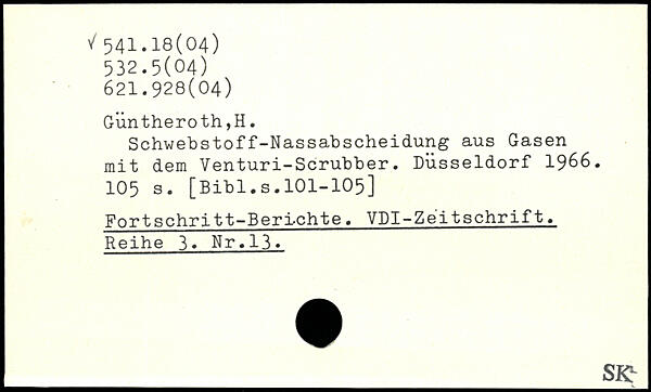 Schwebstoff-Nassabscheidung aus Gasen mit dem Venturi-Scrubber. Düsseldorf 1966.