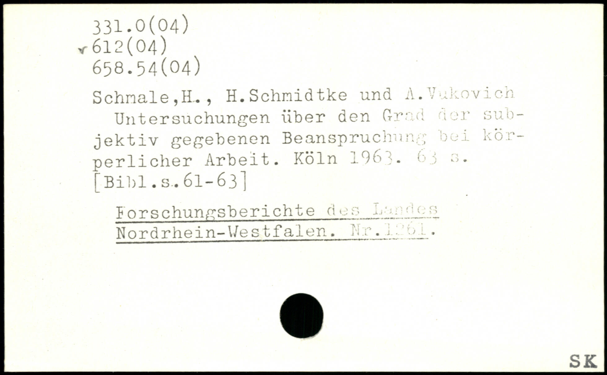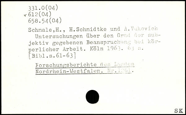 Schnale,E. , H.Schnidtke und A.Vukovich Untersuchungen über den Grad der subjektiv gegebenen Beanspruchung bei körperlicher Arbeit. Köln 4-96 t> 5 3.