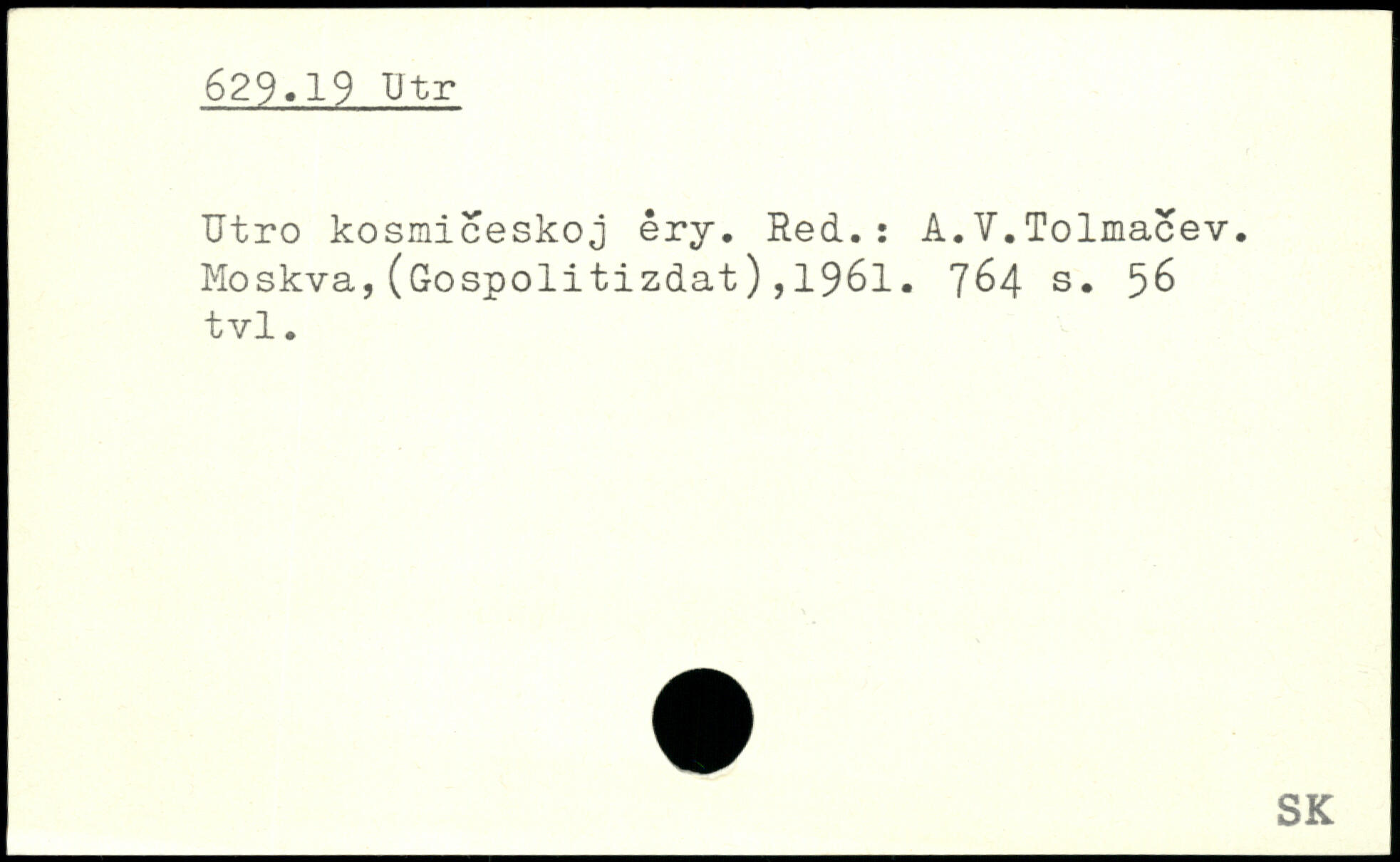 ïïtro kosmiceskoj êry. Red.: A.V.Tolmacev. Moskva,(Gospolitizdat),1961.