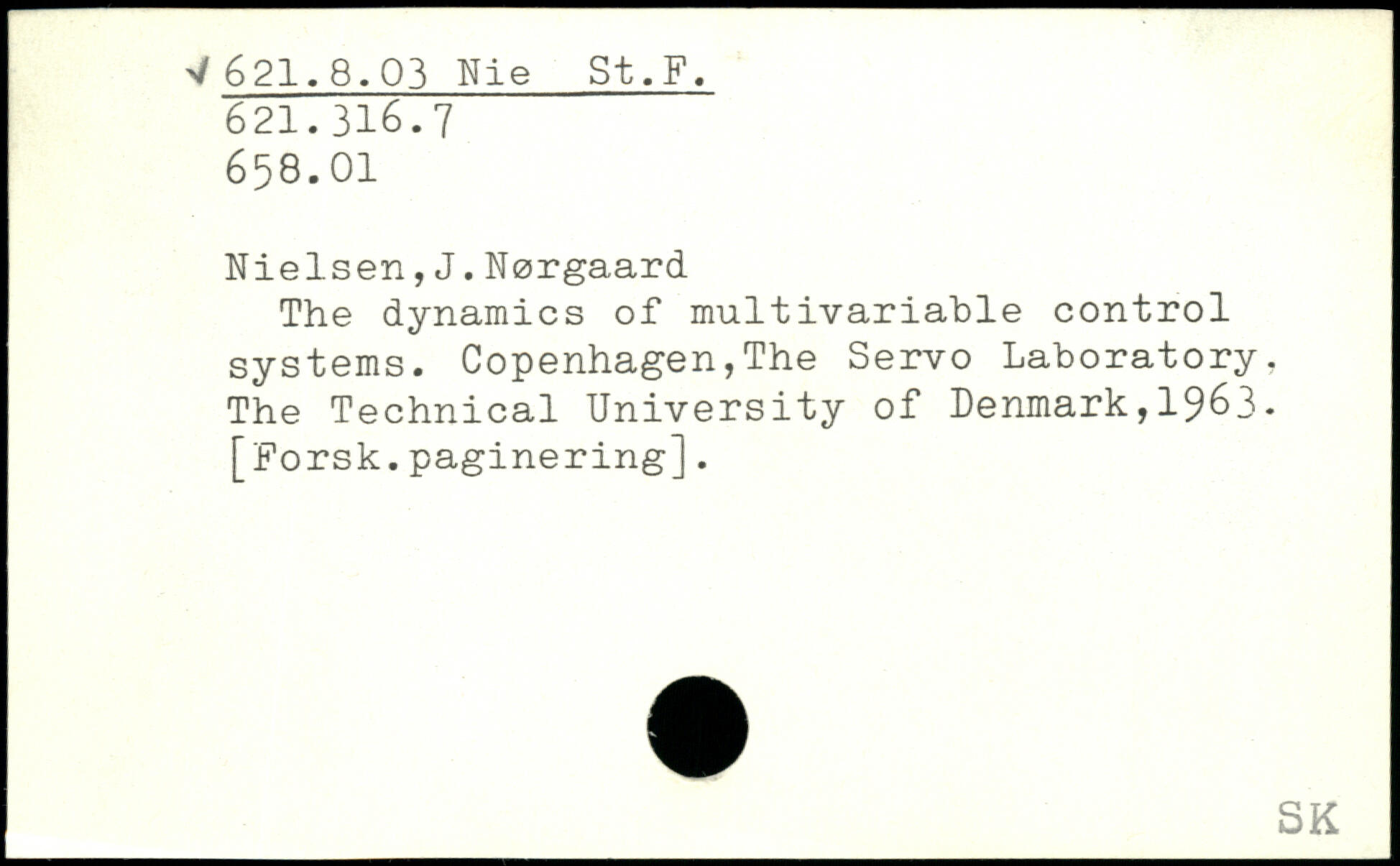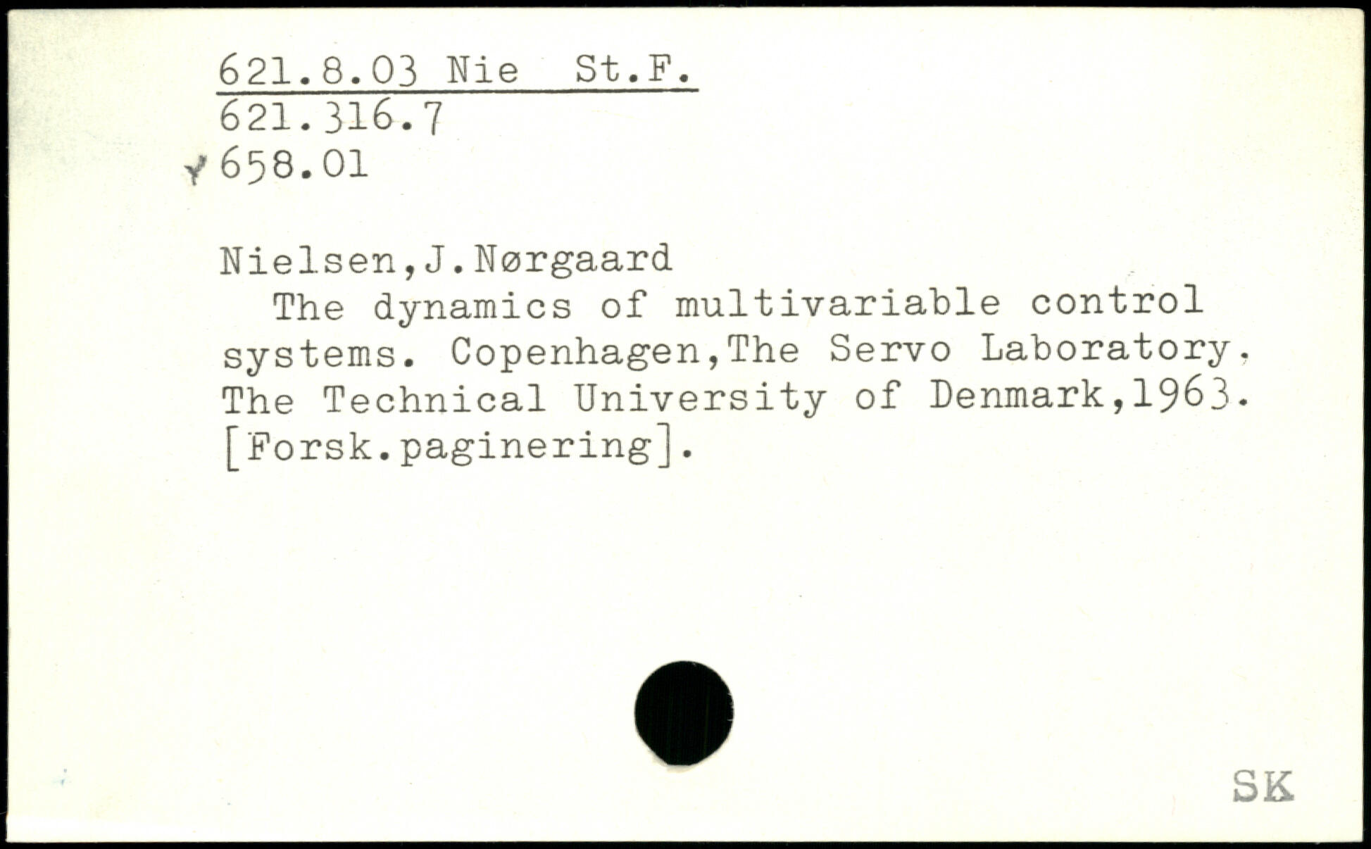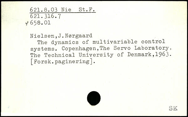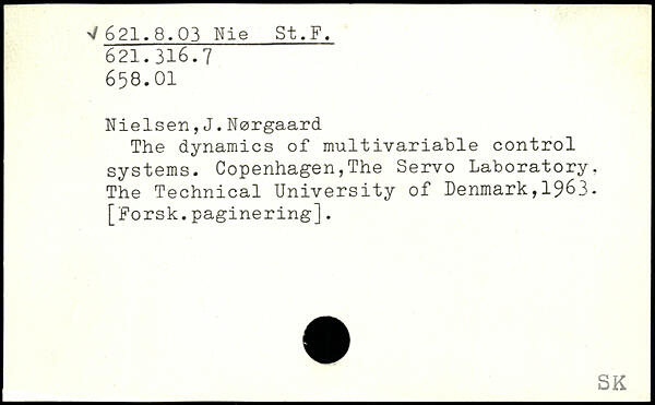 Nielsen,J.Nørgaard The dynamics of multivariable control systems. Copenhagen,The Servo Laboratory, The Technical University of Denmark,1963. [Forsk.paginering].