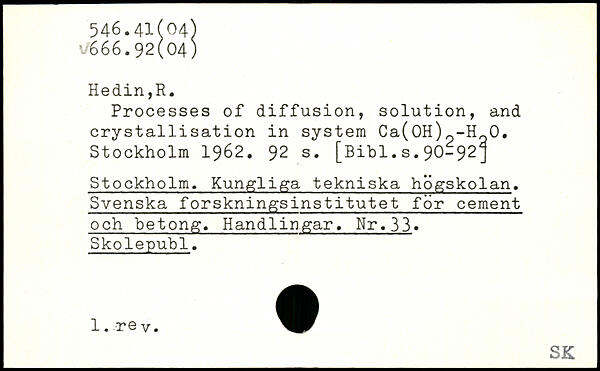Processes of diffusion, solution, and crystallisation in system Ca(0H)9-H_0.