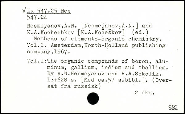 Nesmeyanov,A.N. [Nesmejanov,A.N.] and K.A.Kocheshkov [K.A.Koceskov] (ed.) Methods of elemento-organic chemistry.