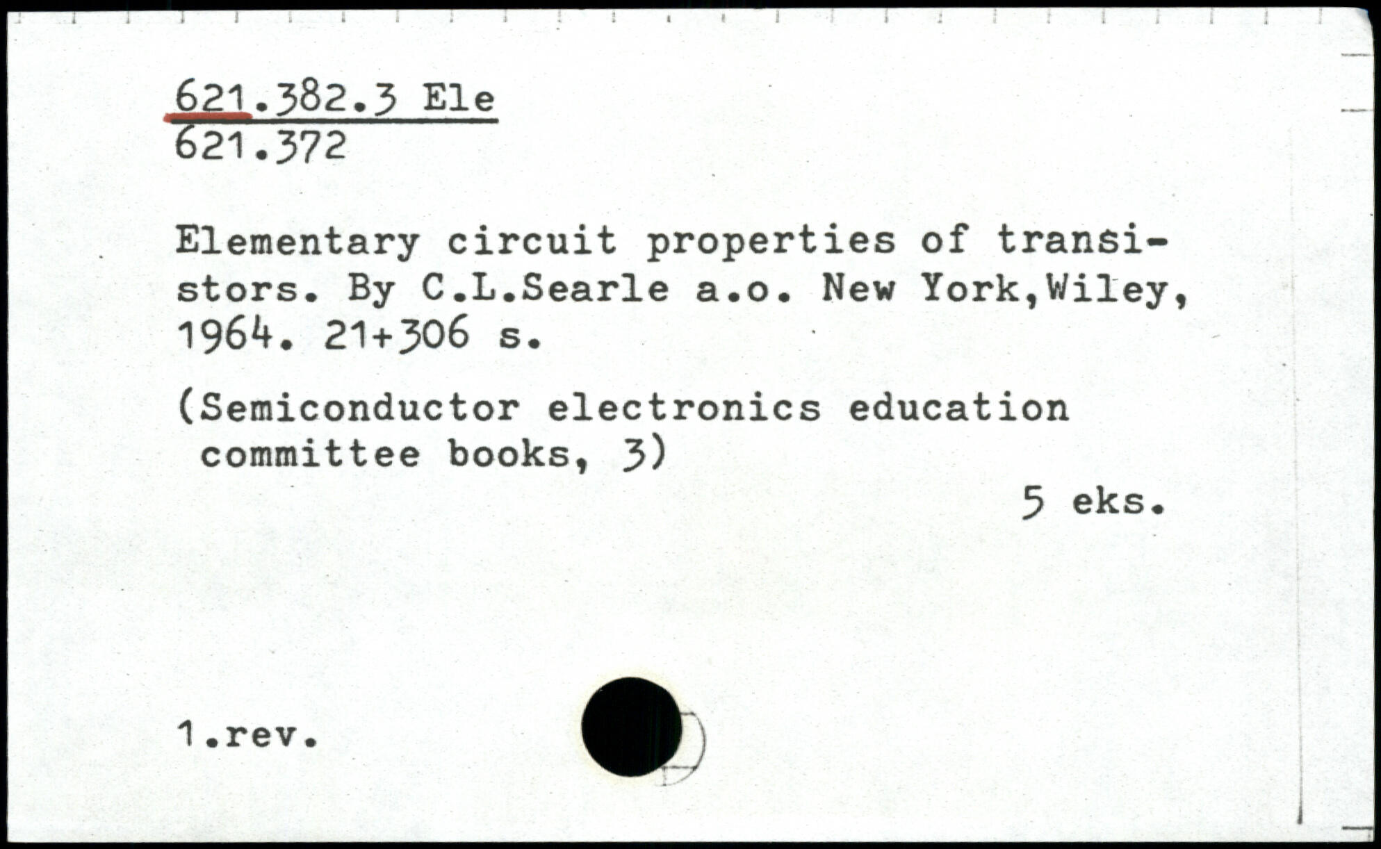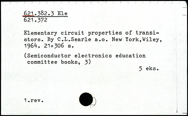 Elementary circuit properties of transistors. By C.L.Searle a.o.