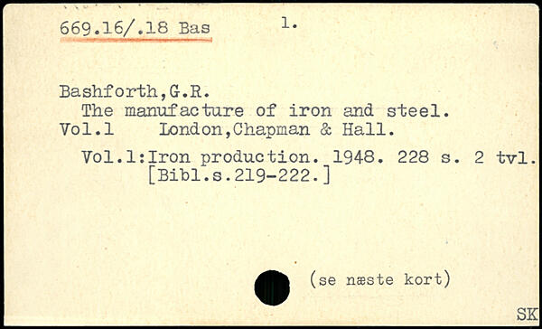 The manufacture of iron and steel. Vo1.1 London,Chapman & Hall. Vol.l:Iron production. 1948.