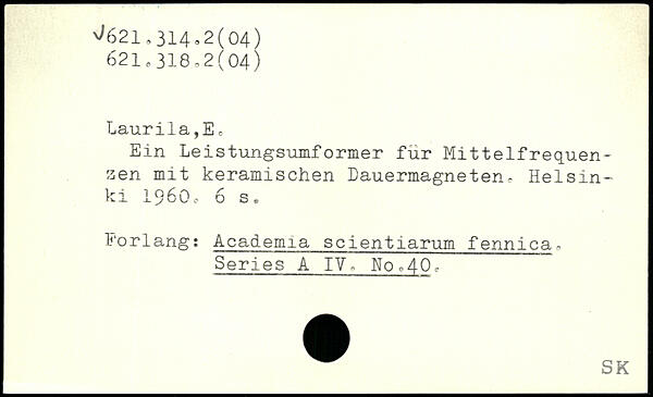 Ein Leistungsumformer fur Mittelfrequenzen mit keramischen Dauermagneten-