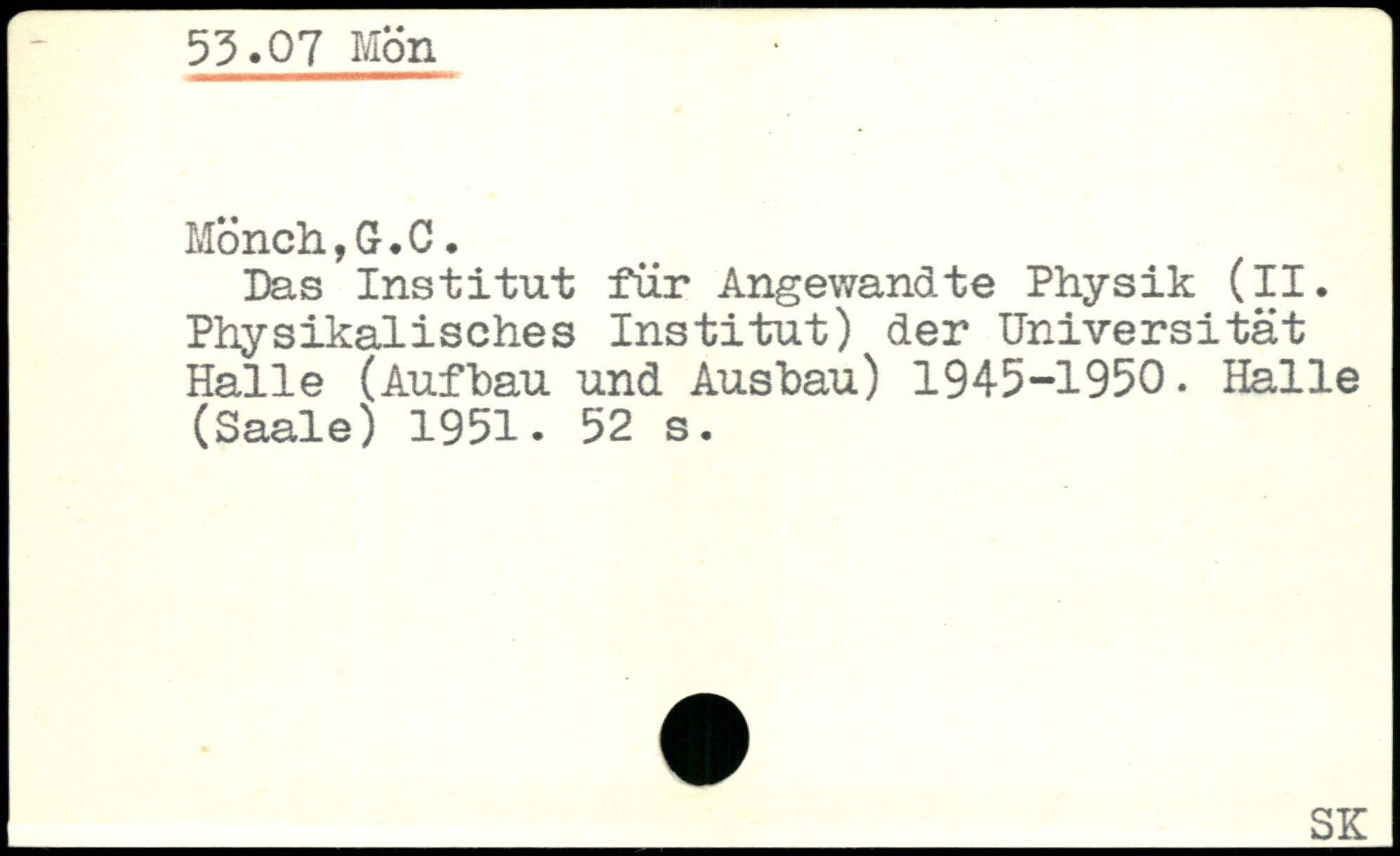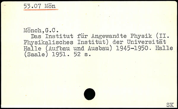 Das Institut für Angewandte Physik (II. Physikalisches Institut) der Universität Halle (Aufbau und Ausbau) 1945-1950. Halle (Saale) 1951.