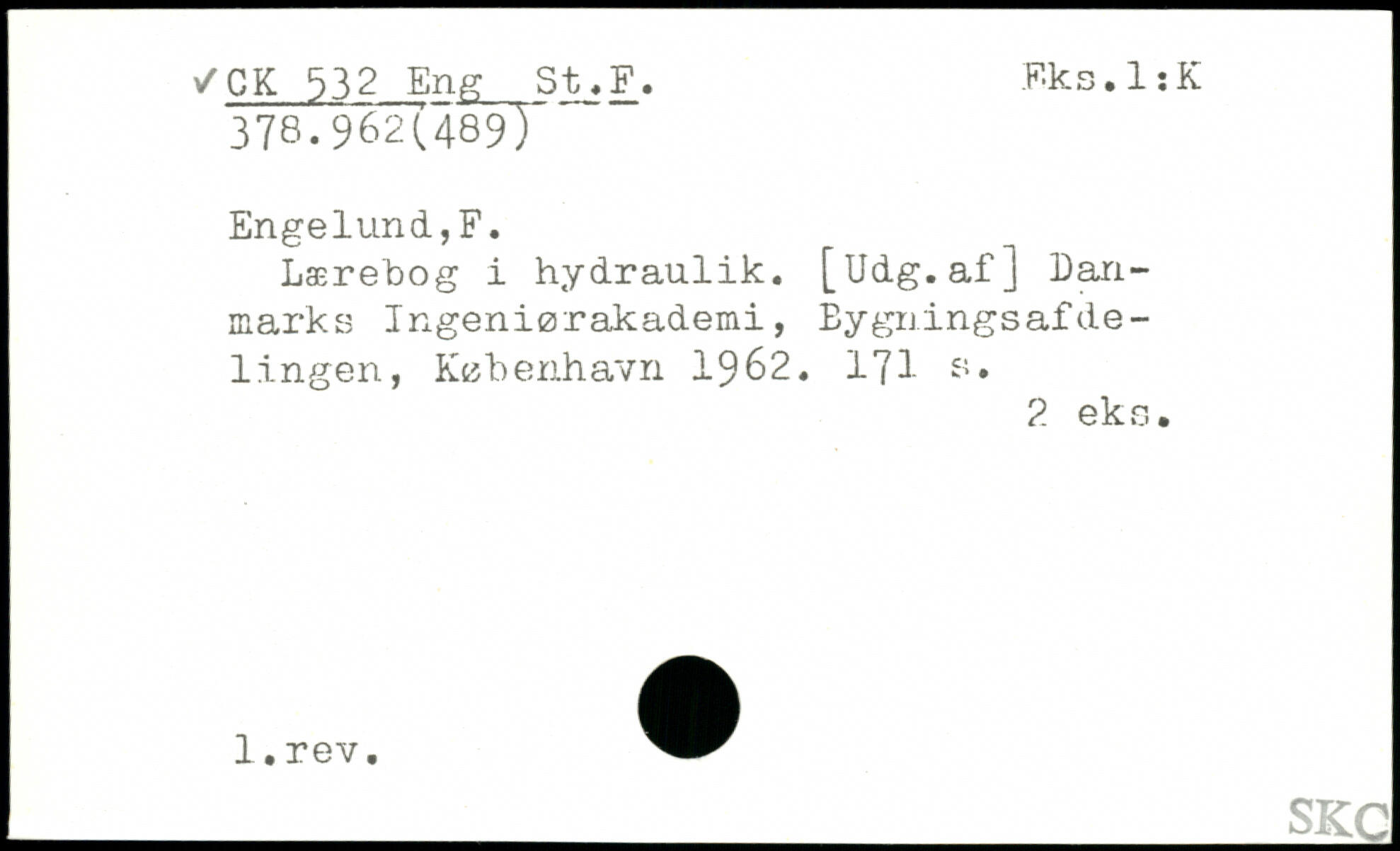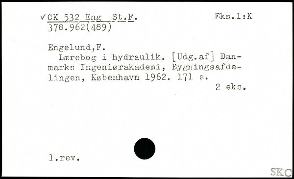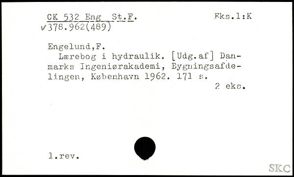 Lærebog i hydraulik. [Udg.af] Danmarks Ingeniørakademi, Bygningsafdelingen