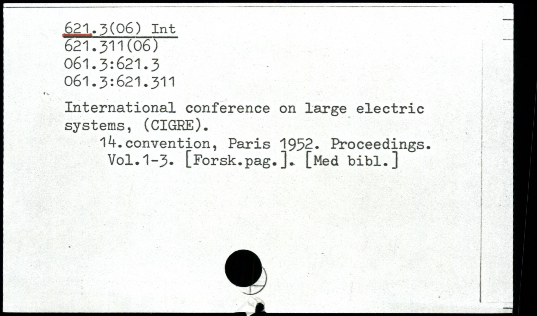 International conference on large electric systems, (CIGRE). Ij 1^-.convention