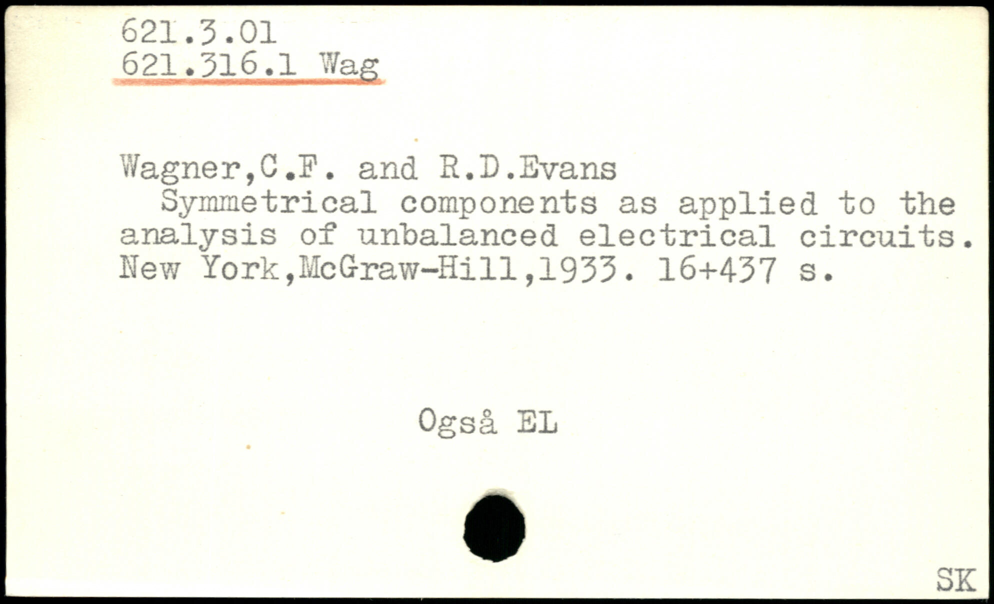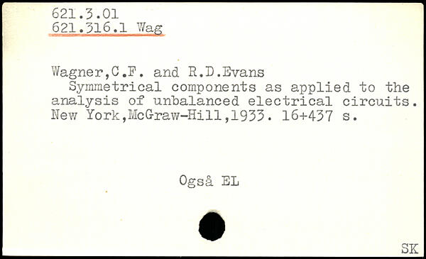 Wagner,C .I1. and R. D.Evans Symmetrical components as applied to the analysis of unbalanced electrical circuits, hew