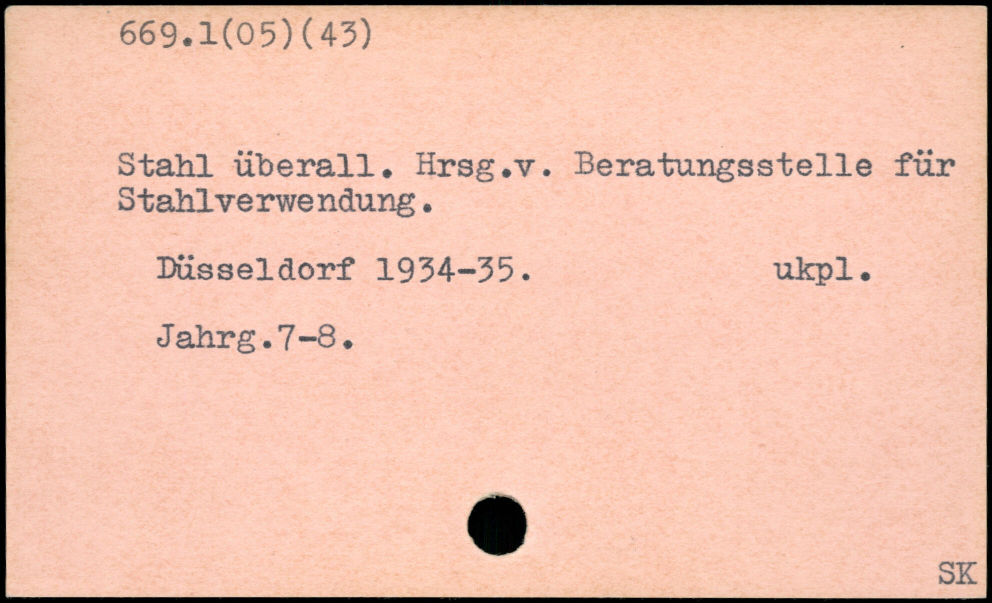 Stahl überall. Hrsg.v. Beratungsstelle für Stahlverwendung. Düsseldorf 1934-35. ukpl. Jahrg.7-8.