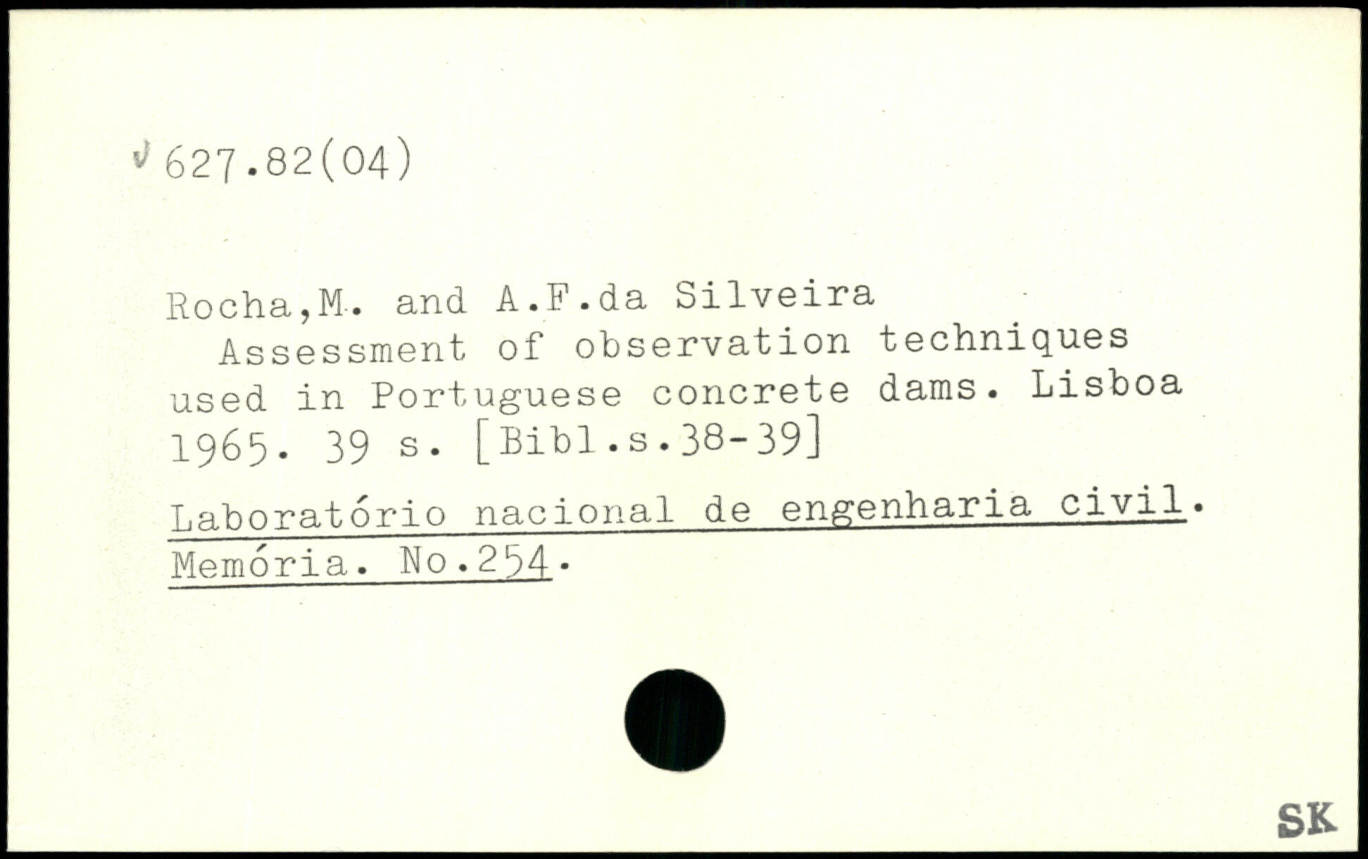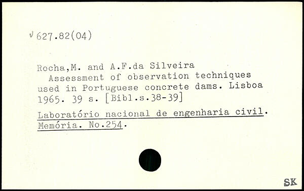 Rocha,M. and A.F.da Silveira Assessment of observation techniques used in Portuguese concrete dams. Lisboa 1965.