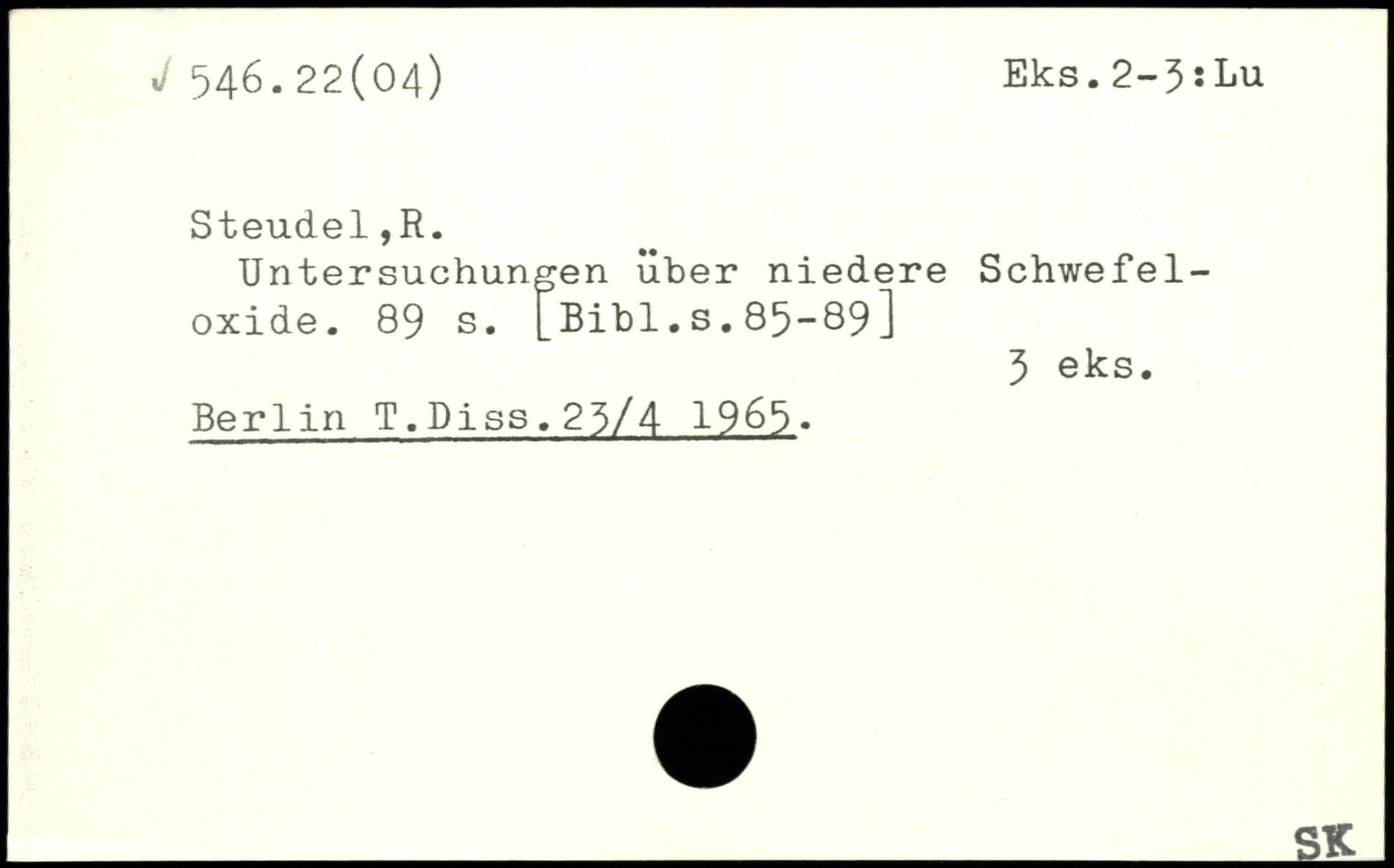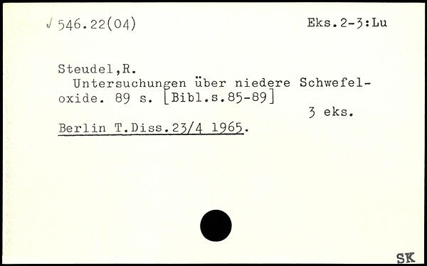 Untersuchungen über niedere Schwefeloxide.