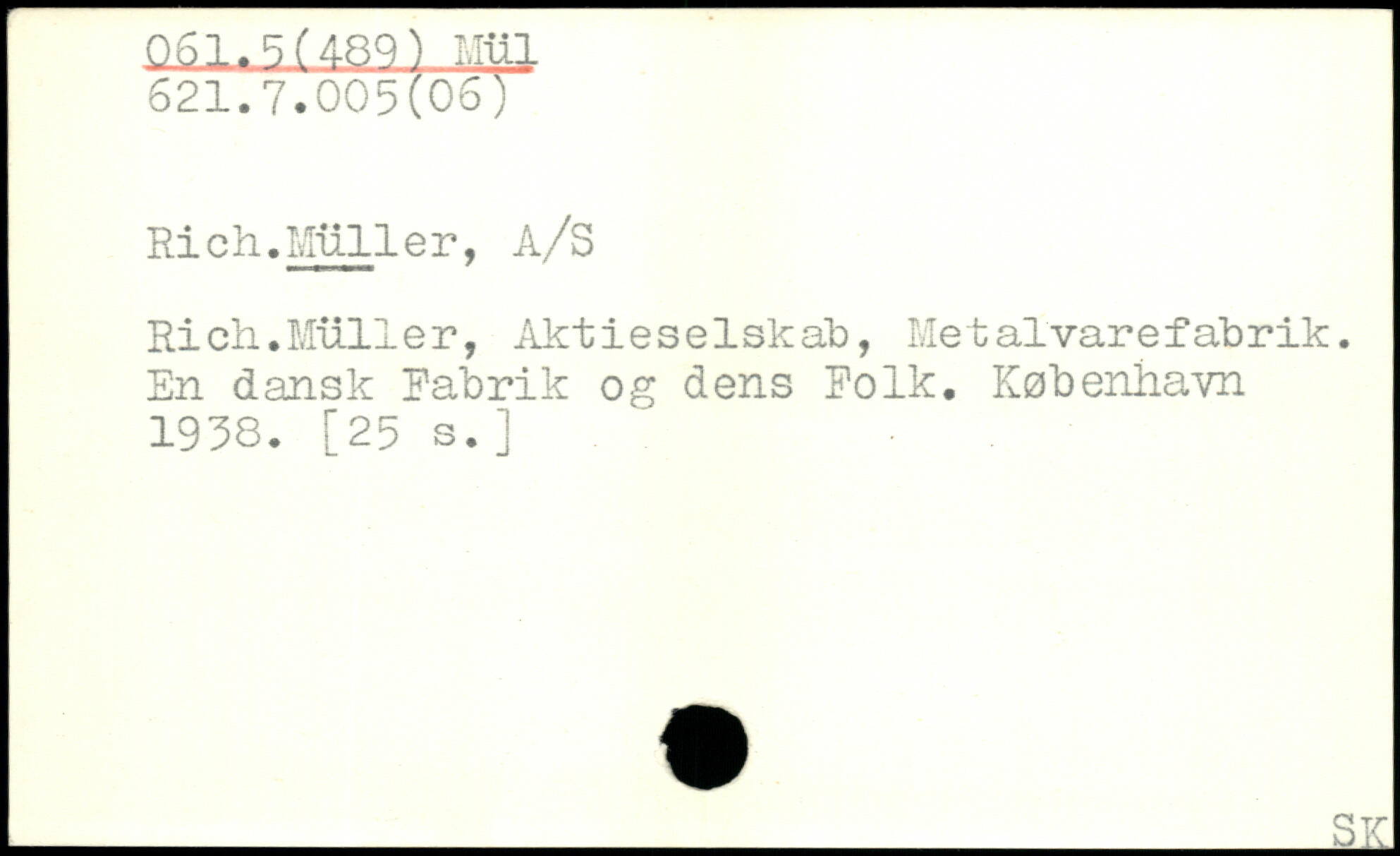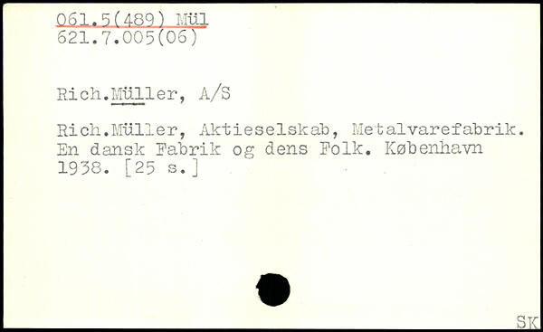 Rieh.Müller. A/S Rieh.Müller, Aktieselskab, Metalvarefabrik. En dansk Fabrik og dens Eolk.