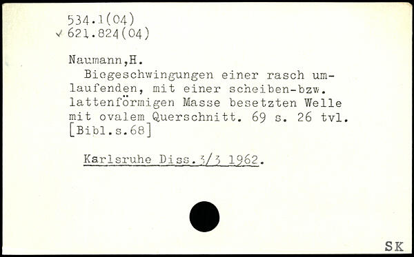 Biegeschwingungen einer rasch umlaufenden, mit einer scheiben-bzw. lattenförmigen Masse besetzten Welle mit ovalem Querschnitt.