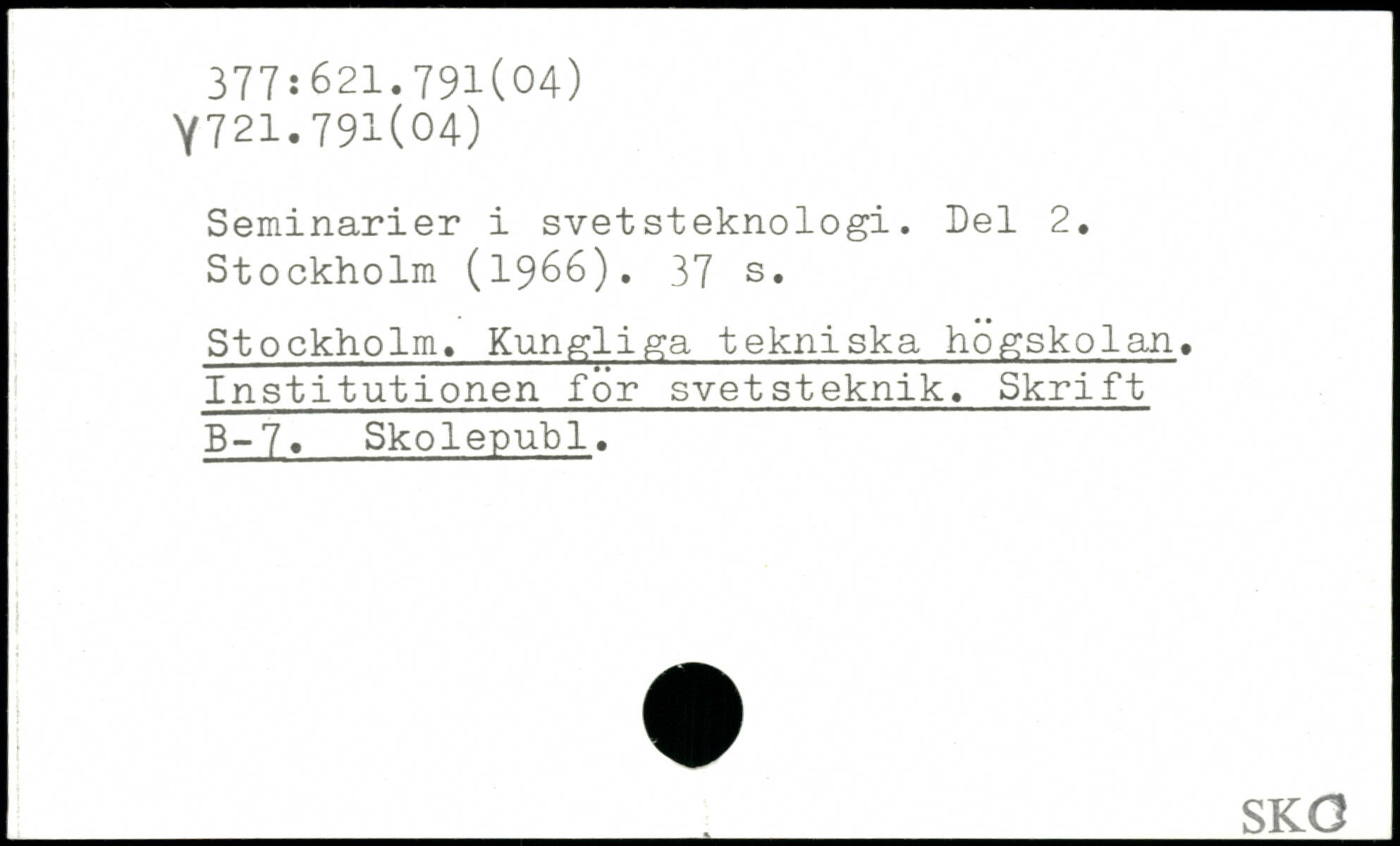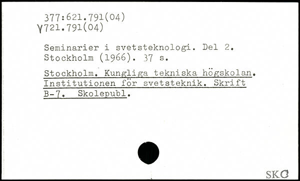 Seminarier i svetsteknologi. Del 2. Stockholm (1966).