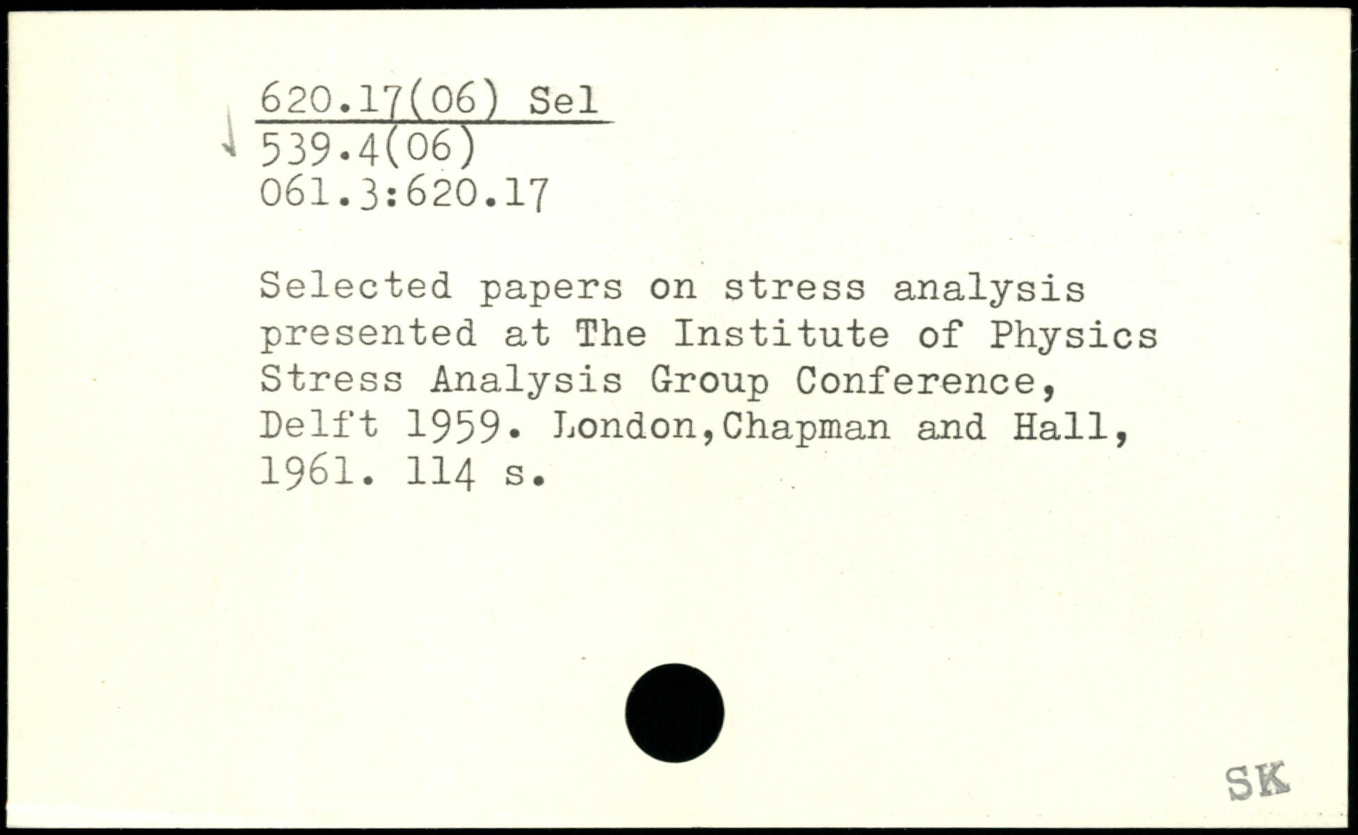 Selected papers on stress analysis presented at The Institute of Physics Stress Analysis Group Conference, Delft 1959