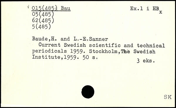 UDK: 015(488) Bau, 1, 05(485), 62(485), 5(485)