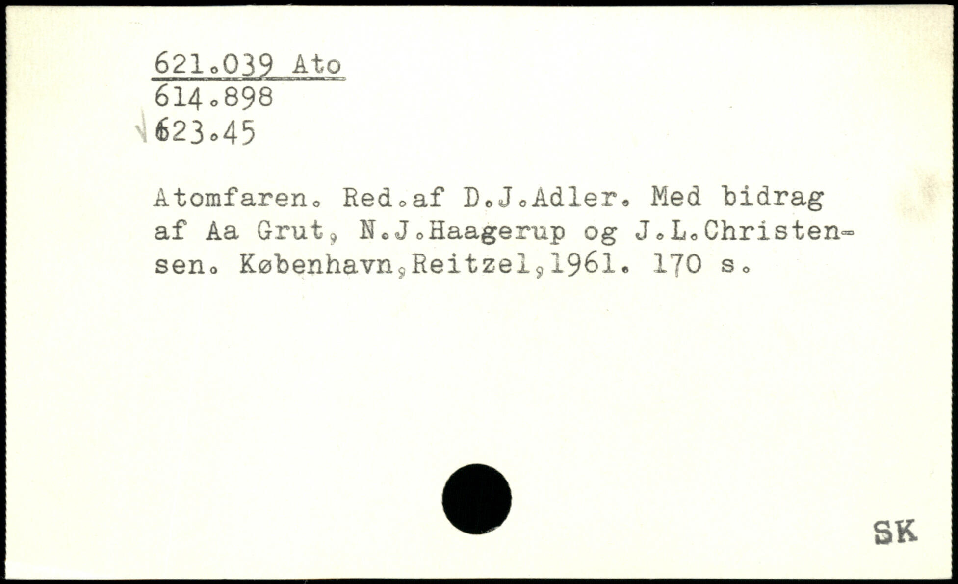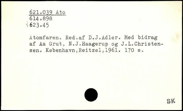 Atomfareru RecLaf D,J0Adler. Med bidrag af Aa Grut, N.JoHaagerup og J,LeChristen-seno KøbenhavnsReitze191961.