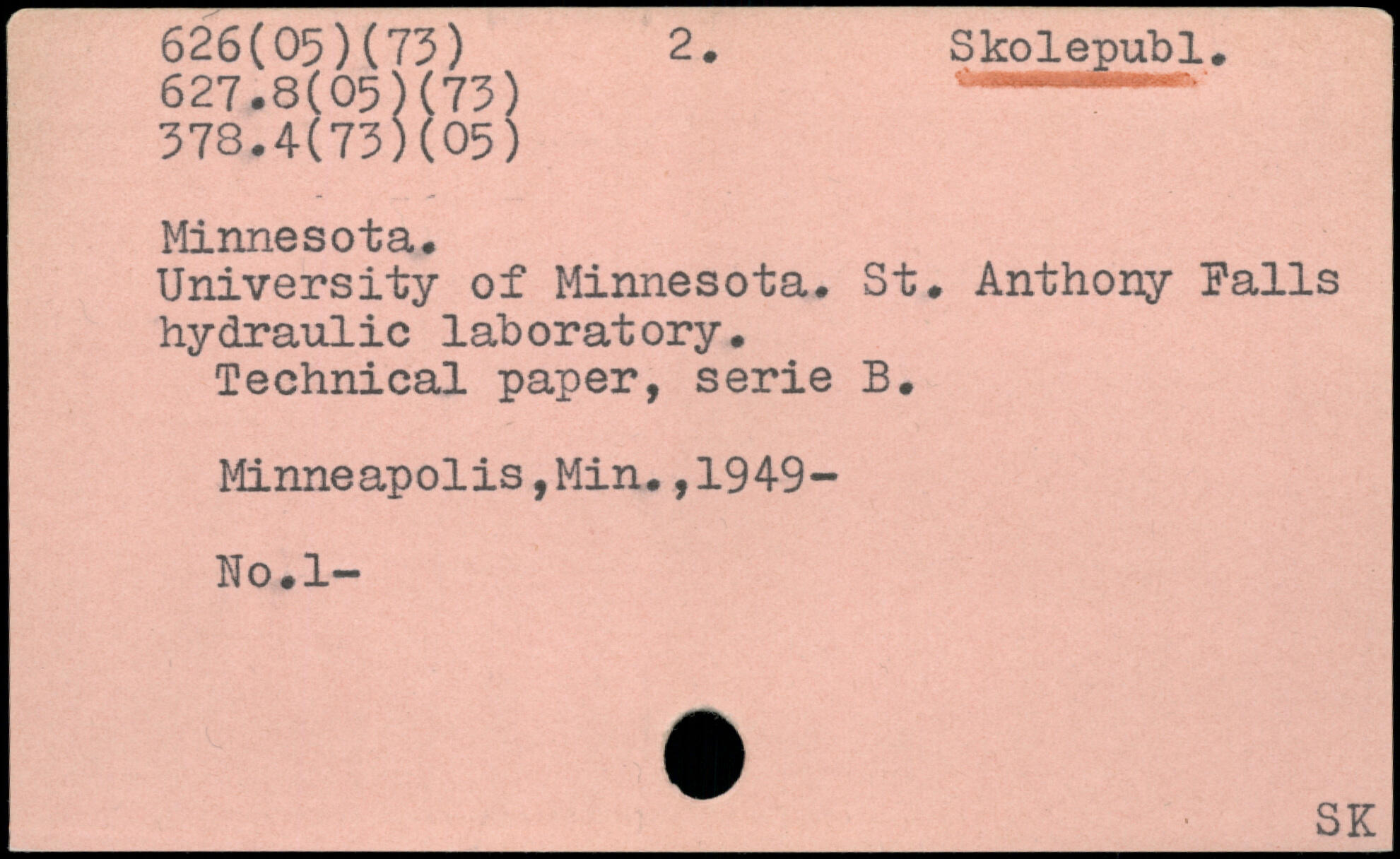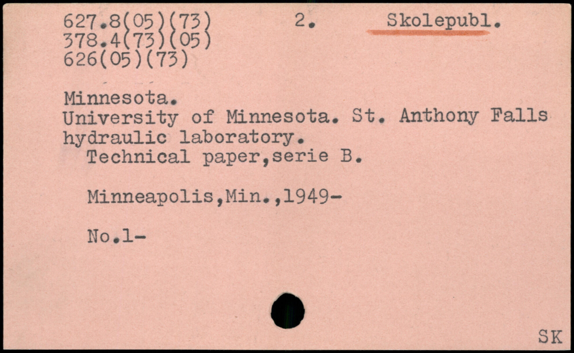 University of Minnesota. St. Anthony Palls hydraulic laboratory. Technical paper, serie B.