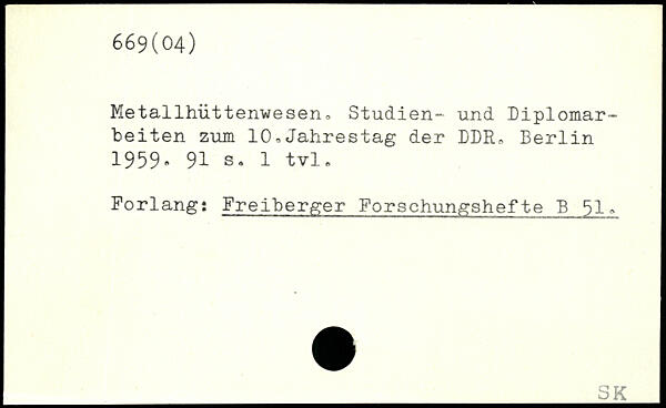 Metallhüttenwesen, Studien- und Diplomarbeiten zum 10,Jahrestag der DDR
