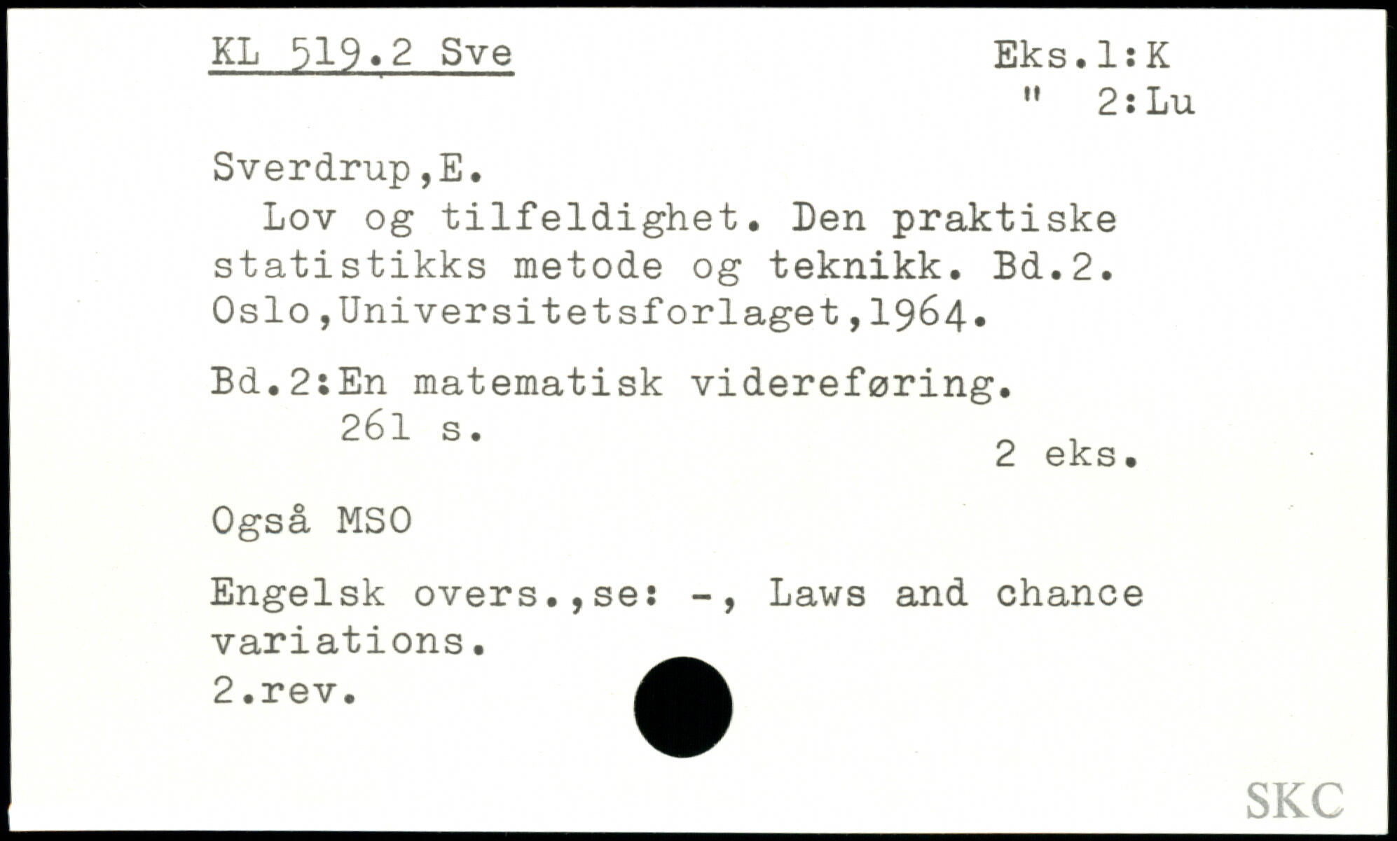Lov og tilfeldighet. Den praktiske statistikks metode og teknikk.