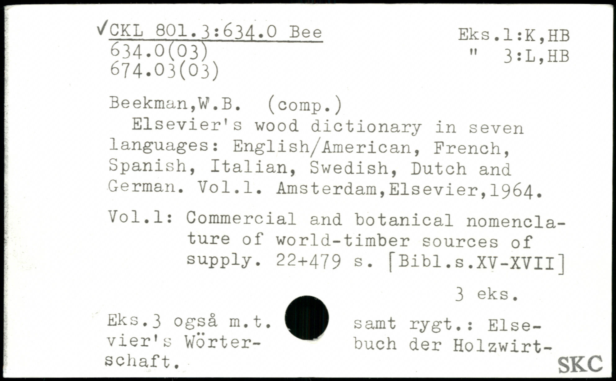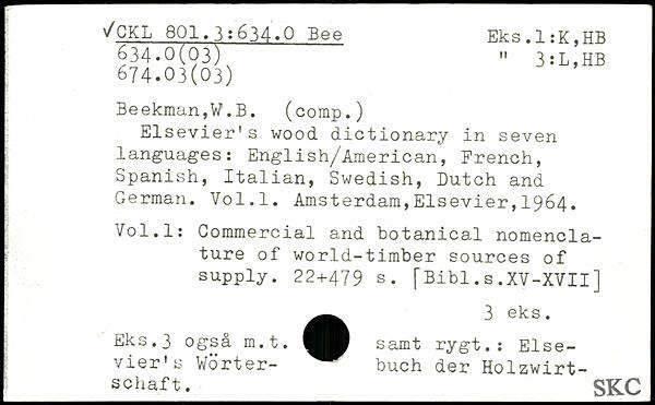 Elsevier's wood dictionary in seven languages: English/American, French, Spanish, Italian, Swedish, Dutch and Ï German.