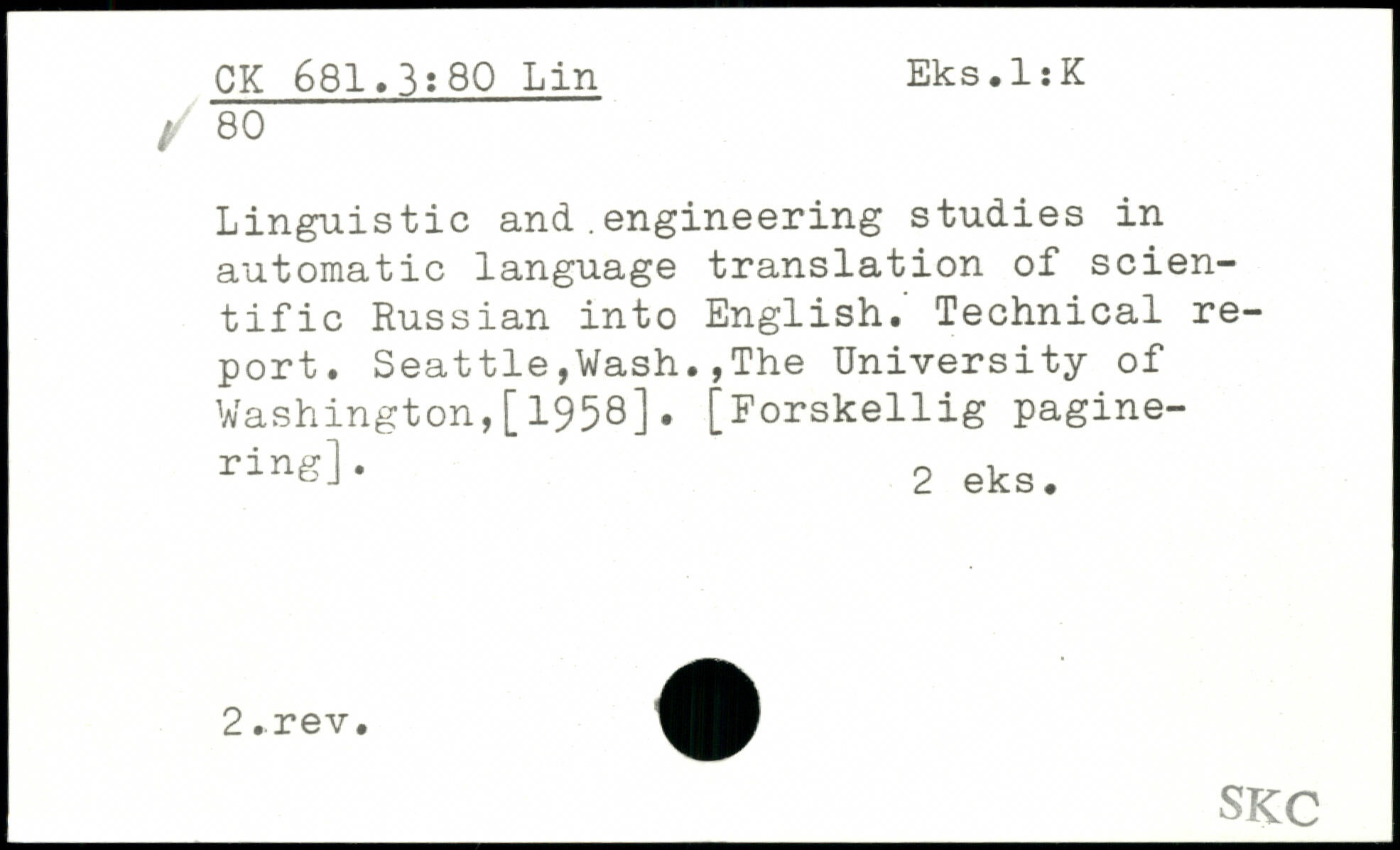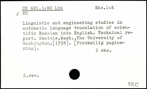 Linguistic and .engineering studies in automatic language translation of scientific Russian into English.' Technical report.