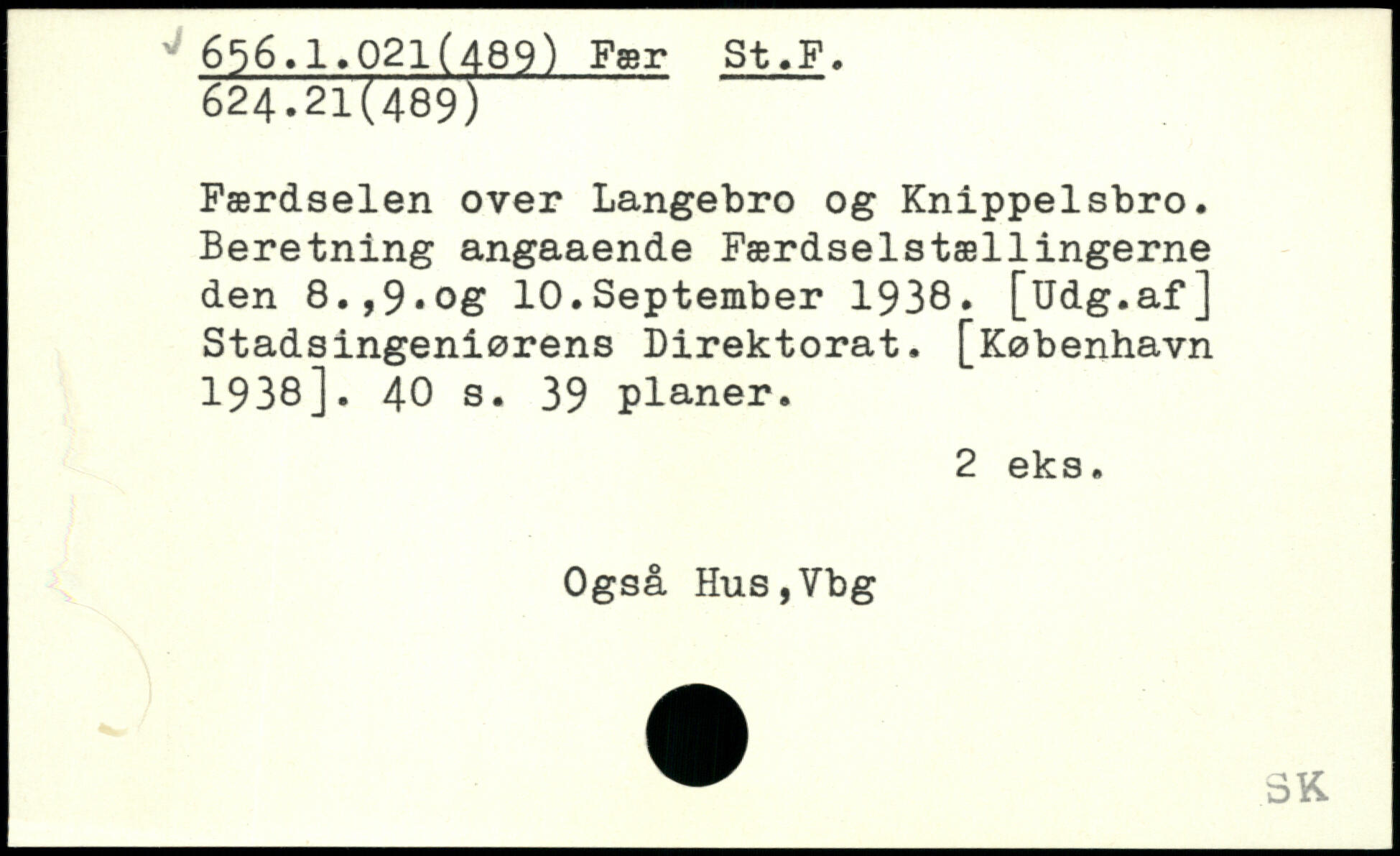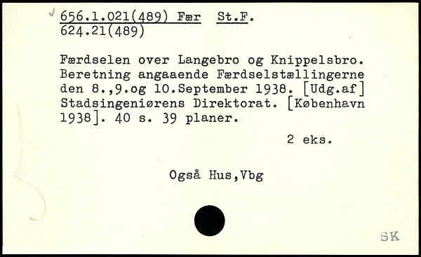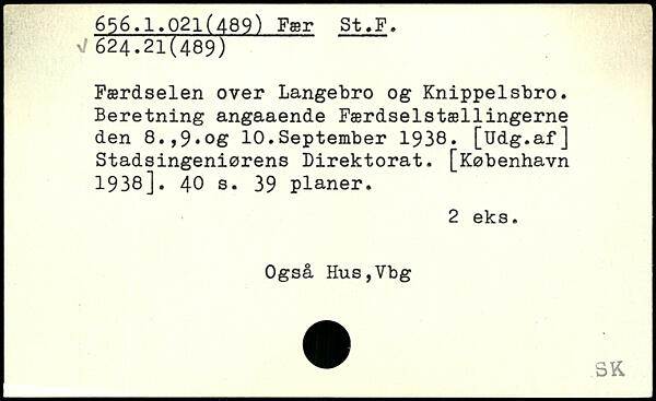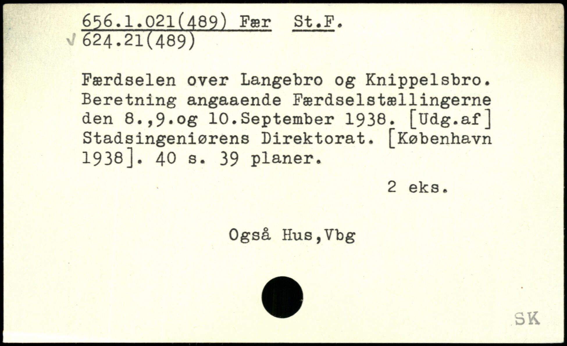 Færdselen over Langebro og Knippelsbro. Beretning angaaende Færdselstællingerne den 8.,9.og 10.September 1938. [Udg.af] Stadsingeniørens Direktorat.