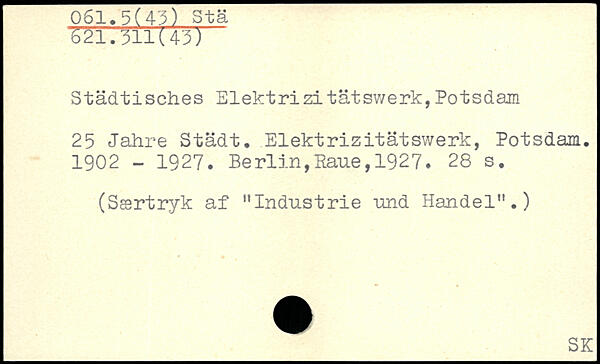 Städtisches Elektrizitätswerk,Potsdam 25 Jahre Stadt. Elektrizitätswerk, Potsdam. 1902 - 1927.