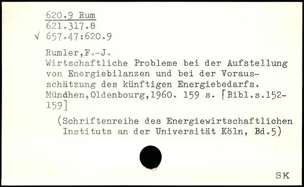Rumler ,'Fo=, J, Wirtschaftliche Probleme bei der Aufstellung von Energiebilanzen und bei der