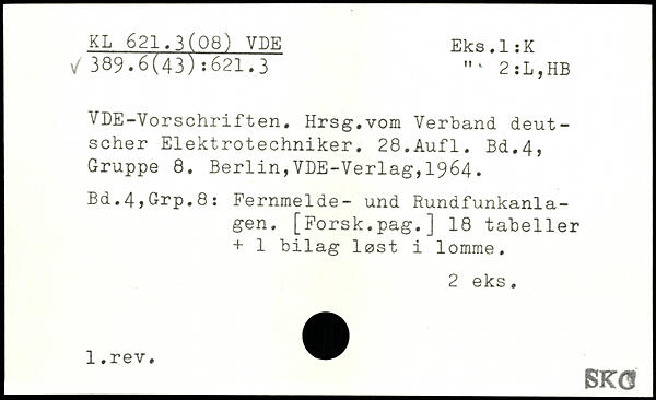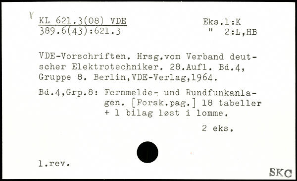 VDE-Vorschriften. Hrsg.vom Verband deutscher Elektrotechniker.