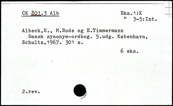 CK Alb Eks. 1:K J- " 3-5:Int. Albeck,U., M.Rode og E.Timmermann Dansk synonym-ordbog. 5,udg.