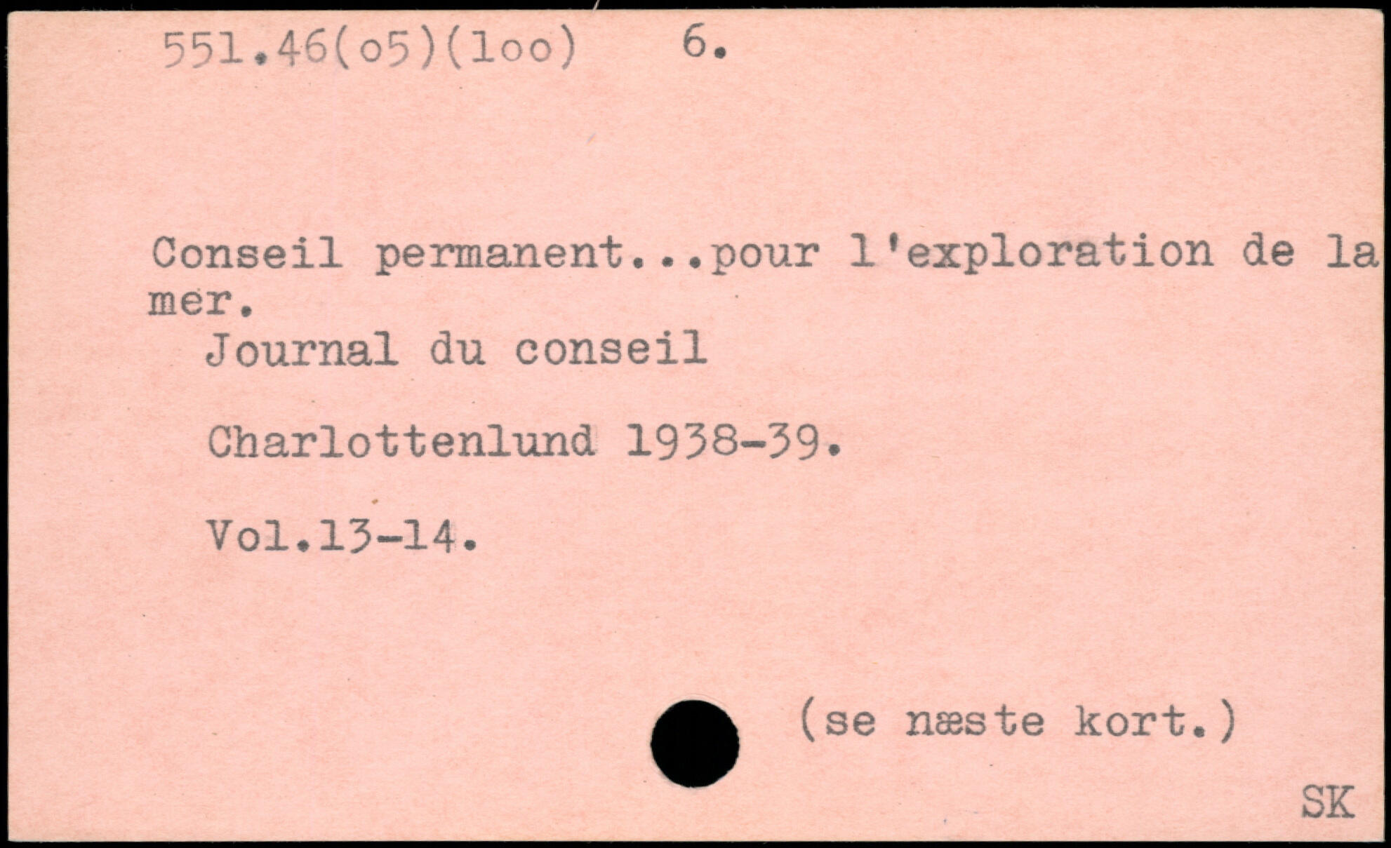 Conseil permanent...pour l'exploration de la mer. Journal du conseil Charlottenlund 1938-39.