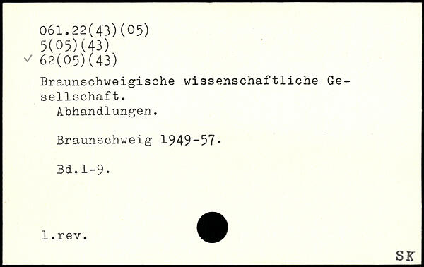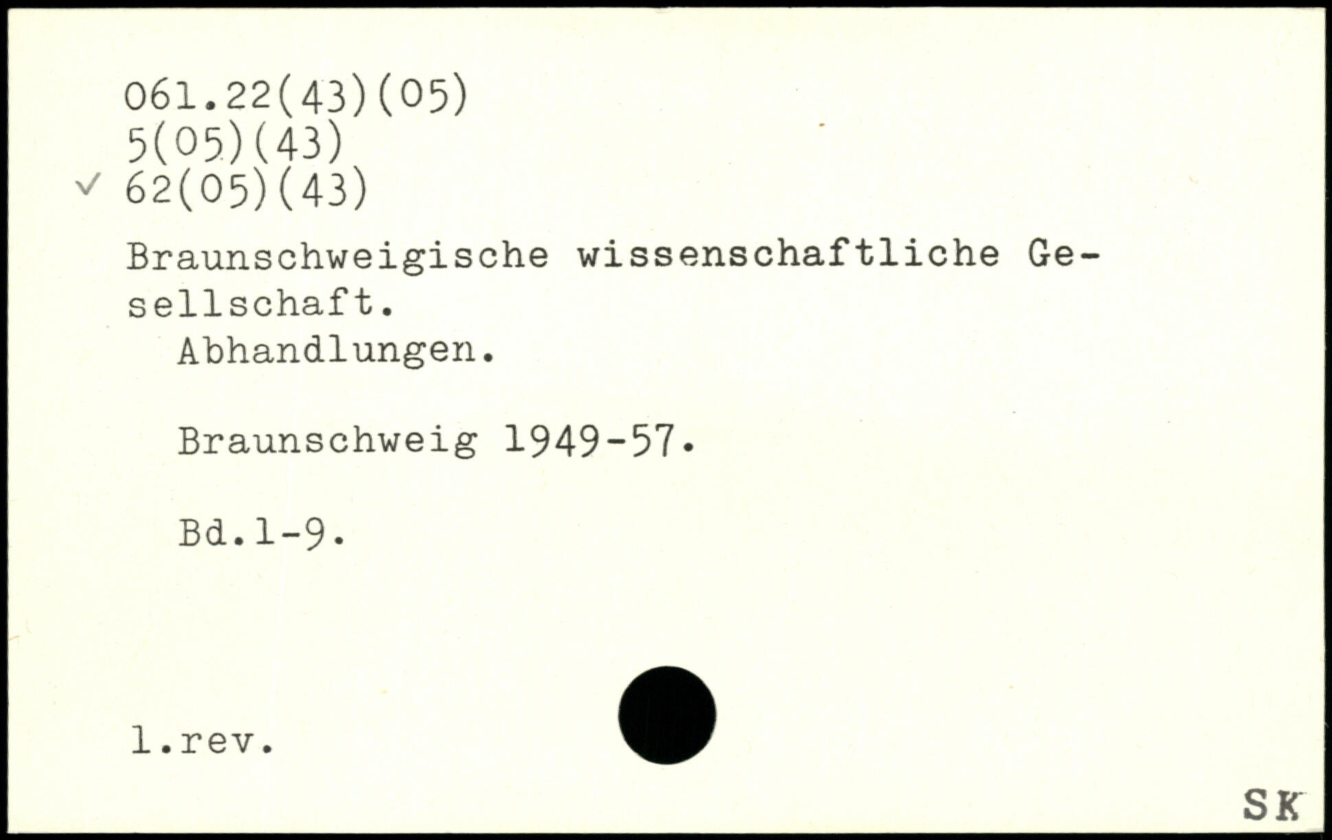 Braunschweigische wissenschaftliche Gesellschaf t. Abhandlungen. Braunschweig 1949-57