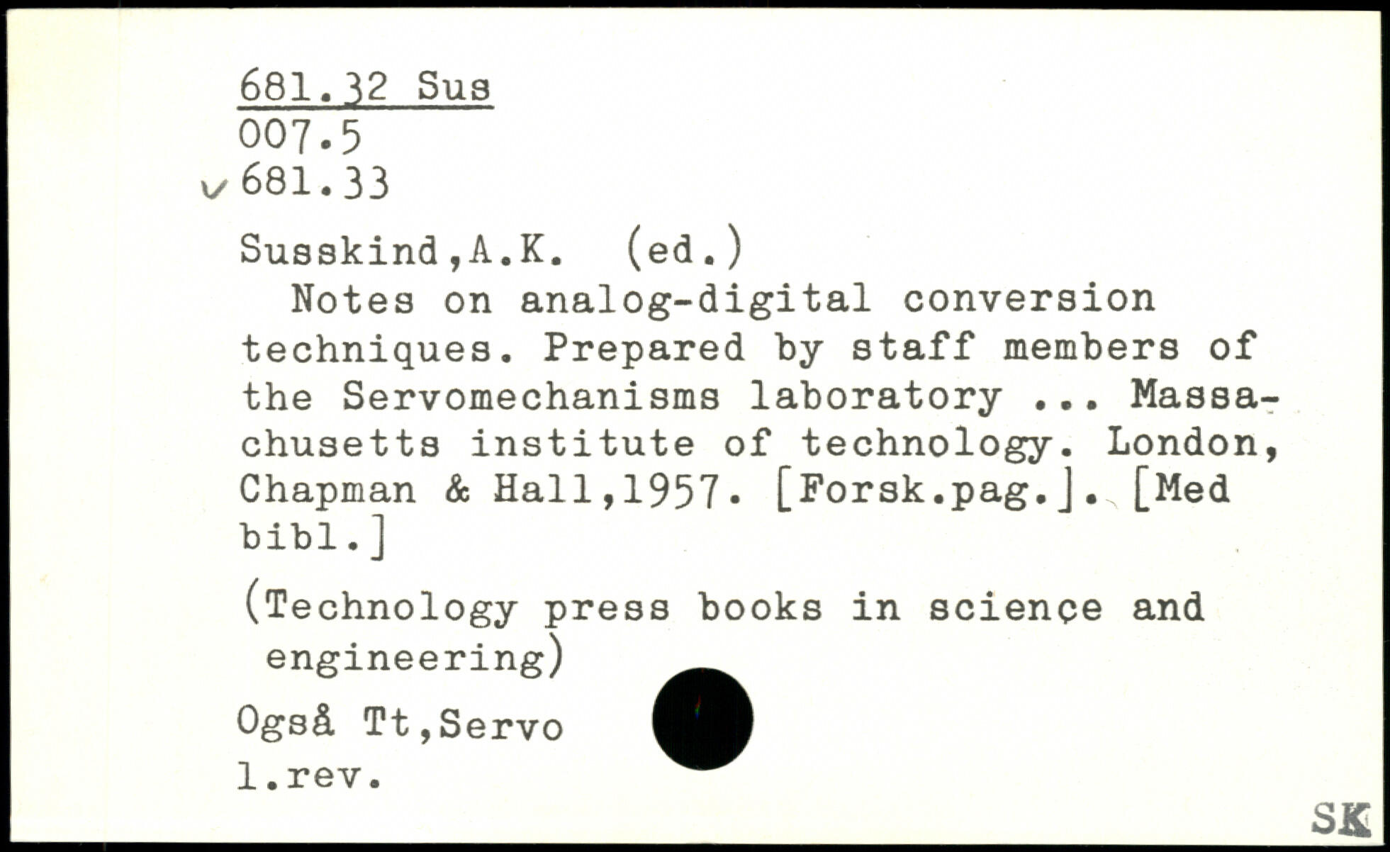 Notes on analog-digital conversion techniques. Prepared by staff members of the Servomechanisms laboratory ... Massachusetts institute of technology.