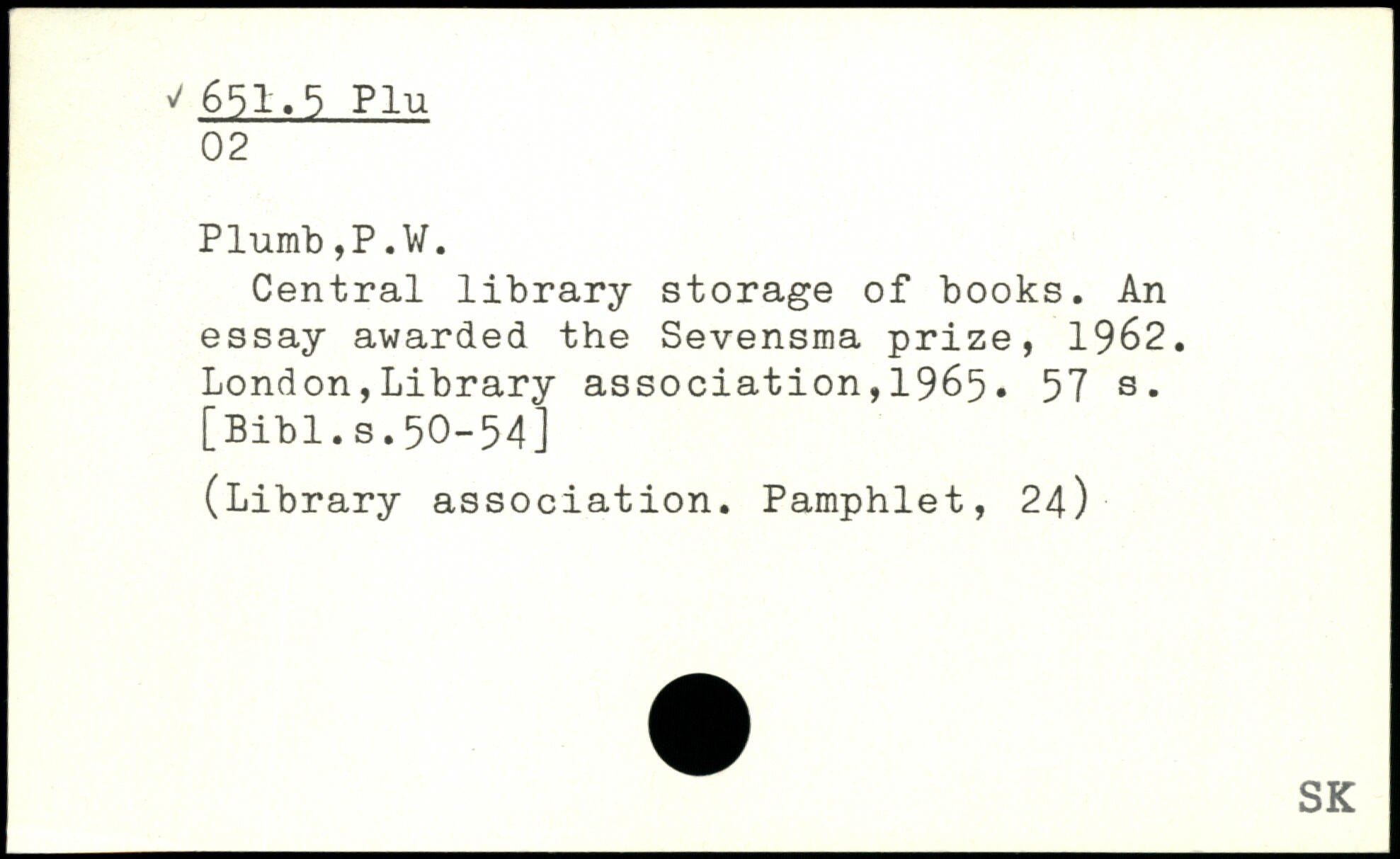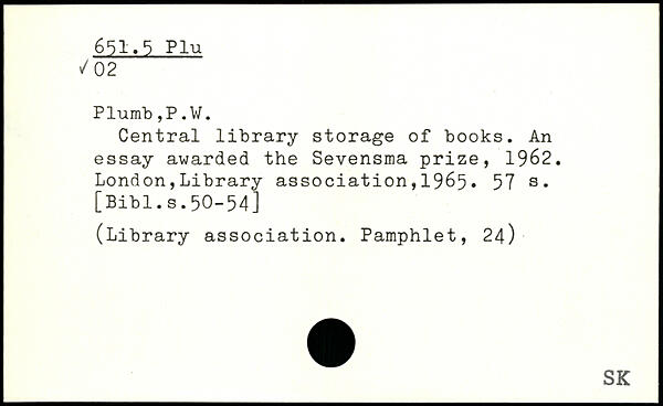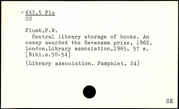 Central library storage of books. An essay awarded the Sevensma prize, 1962.