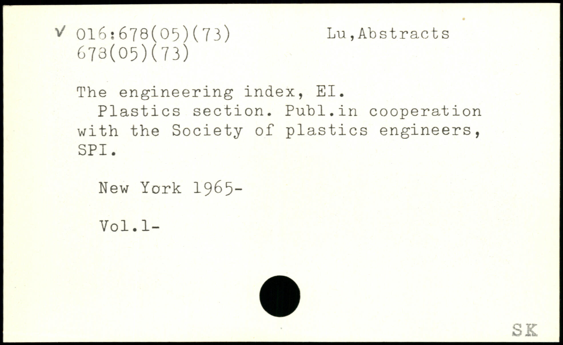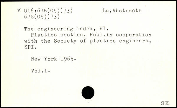 The engineering index, El. Plastics section. Publ.in cooperation with the Society of plastics engineers, SPI.