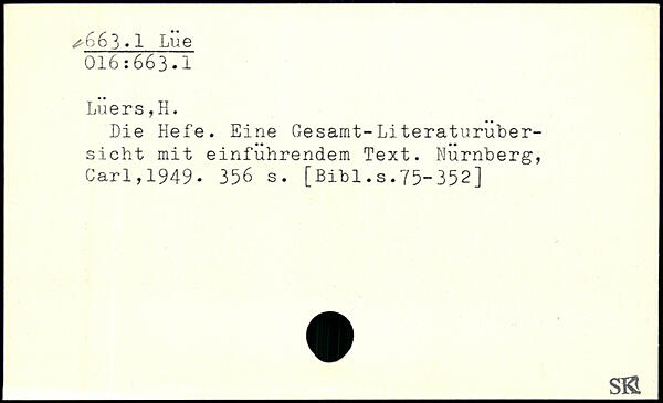 Die Hefe. Eine Gesamt-Literaturuber-sicht mit einführendem Text.