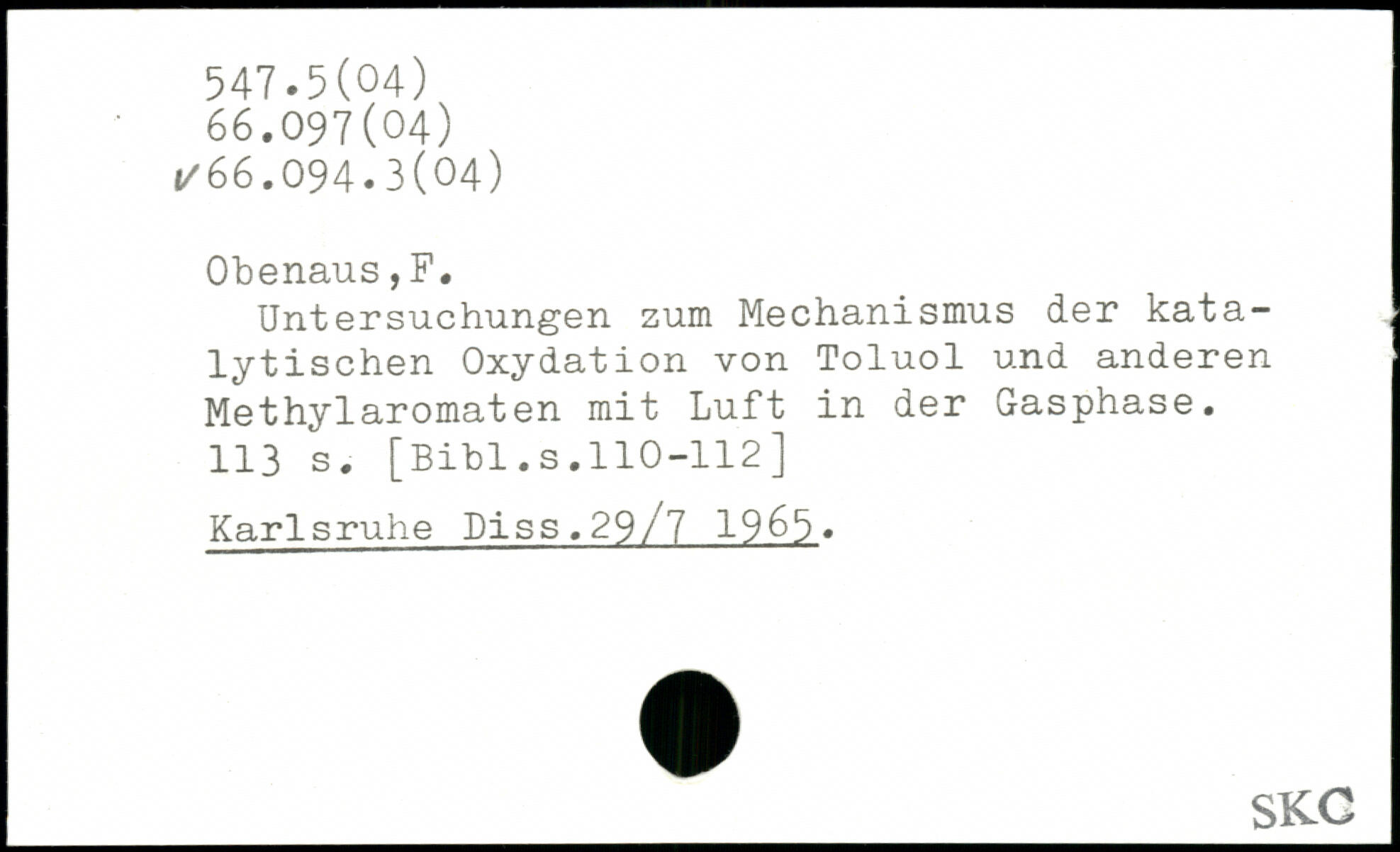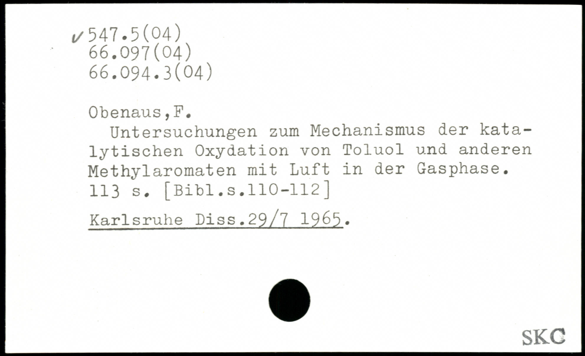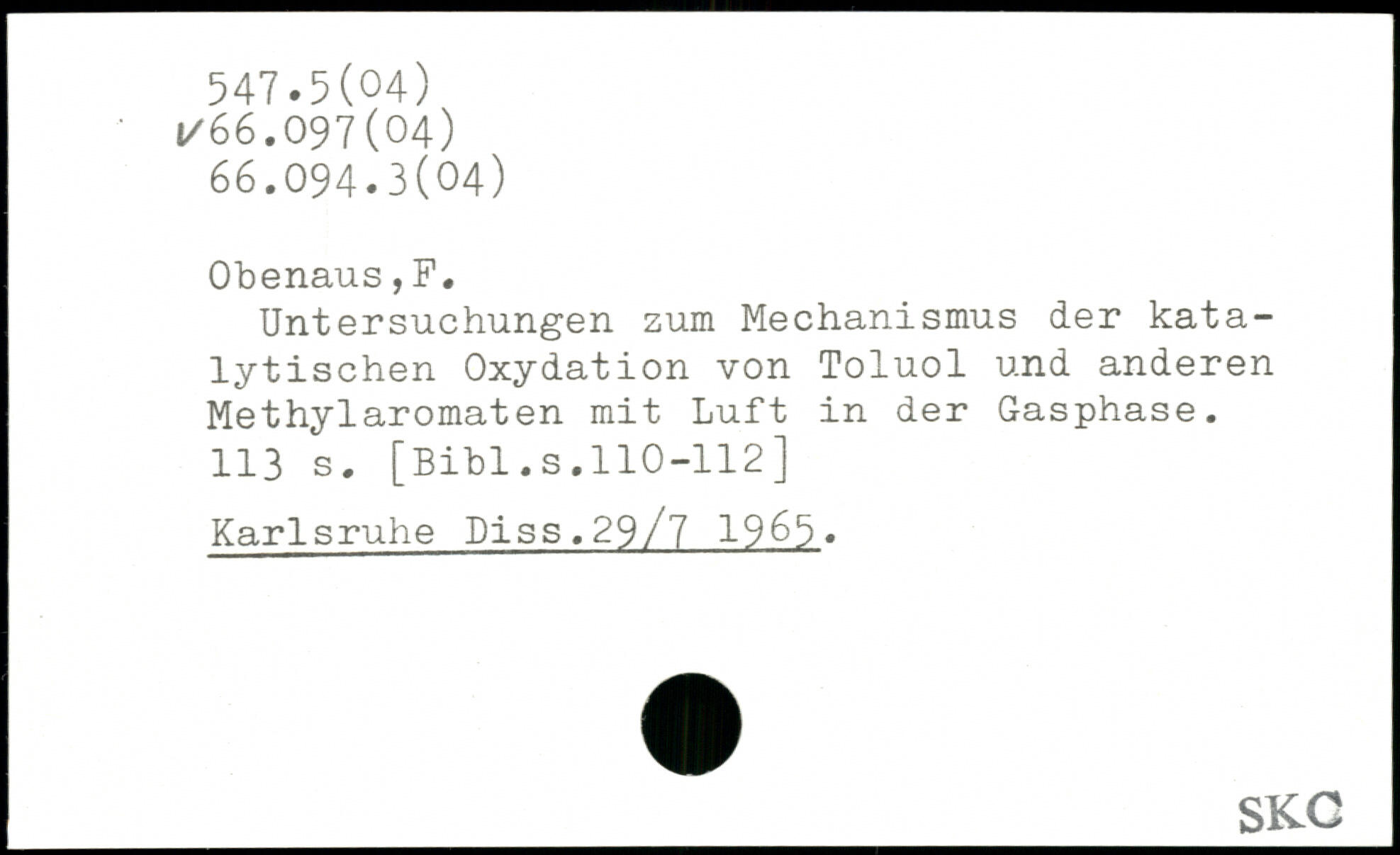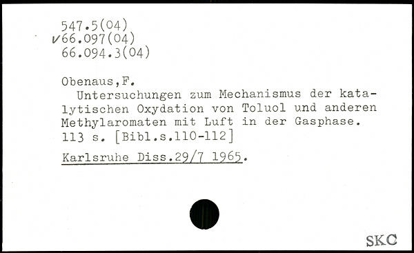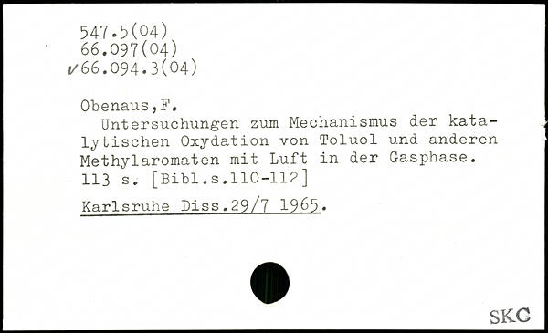 Untersuchungen zum Mechanismus der katalytischen Oxydation von Toluol und anderen Methylaromaten mit Luft in der Gasphase.
