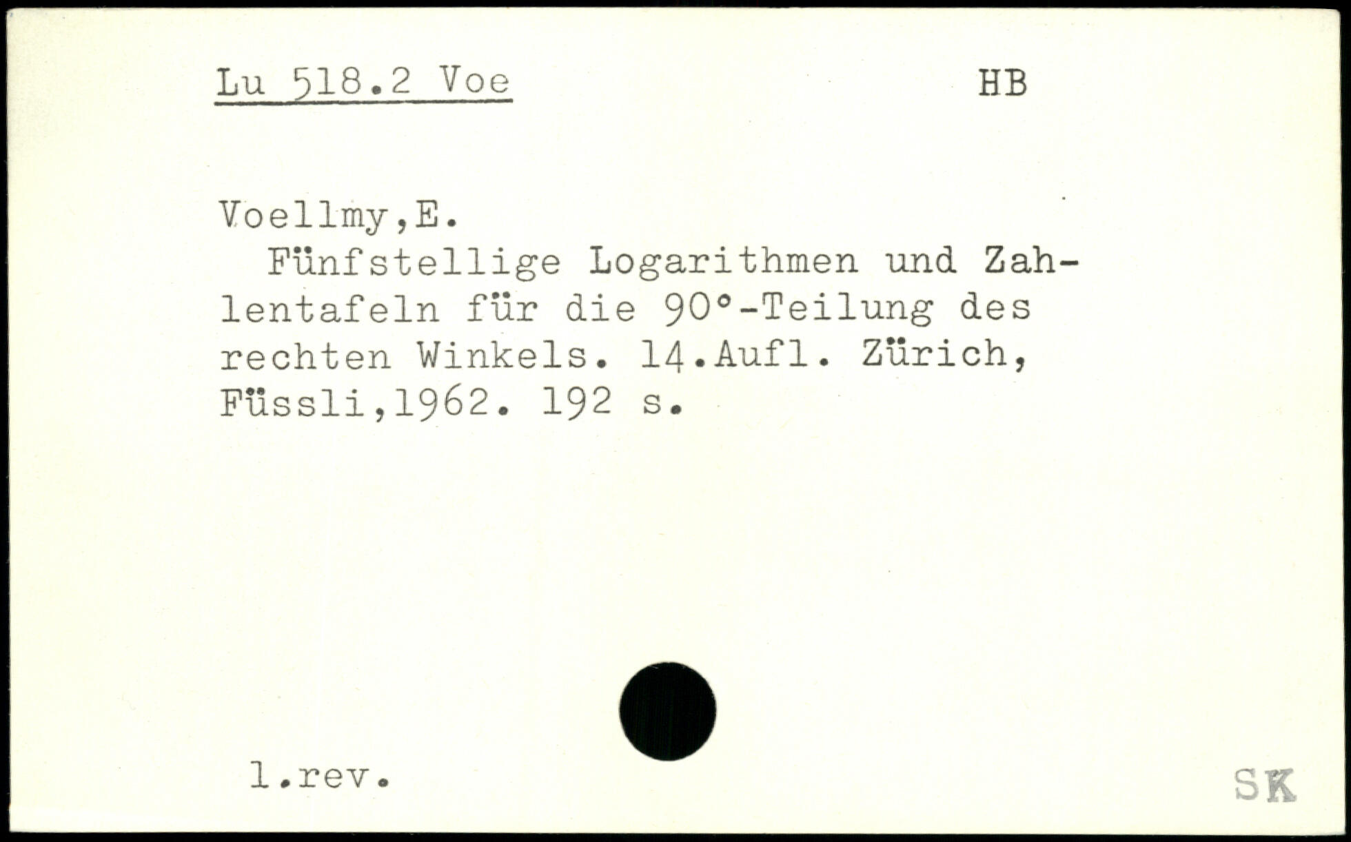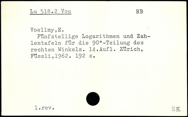 Fünfstellige Logarithmen und Zahlentafeln für die 90.-Teilung des rechten Winkels. 14-Aufl.